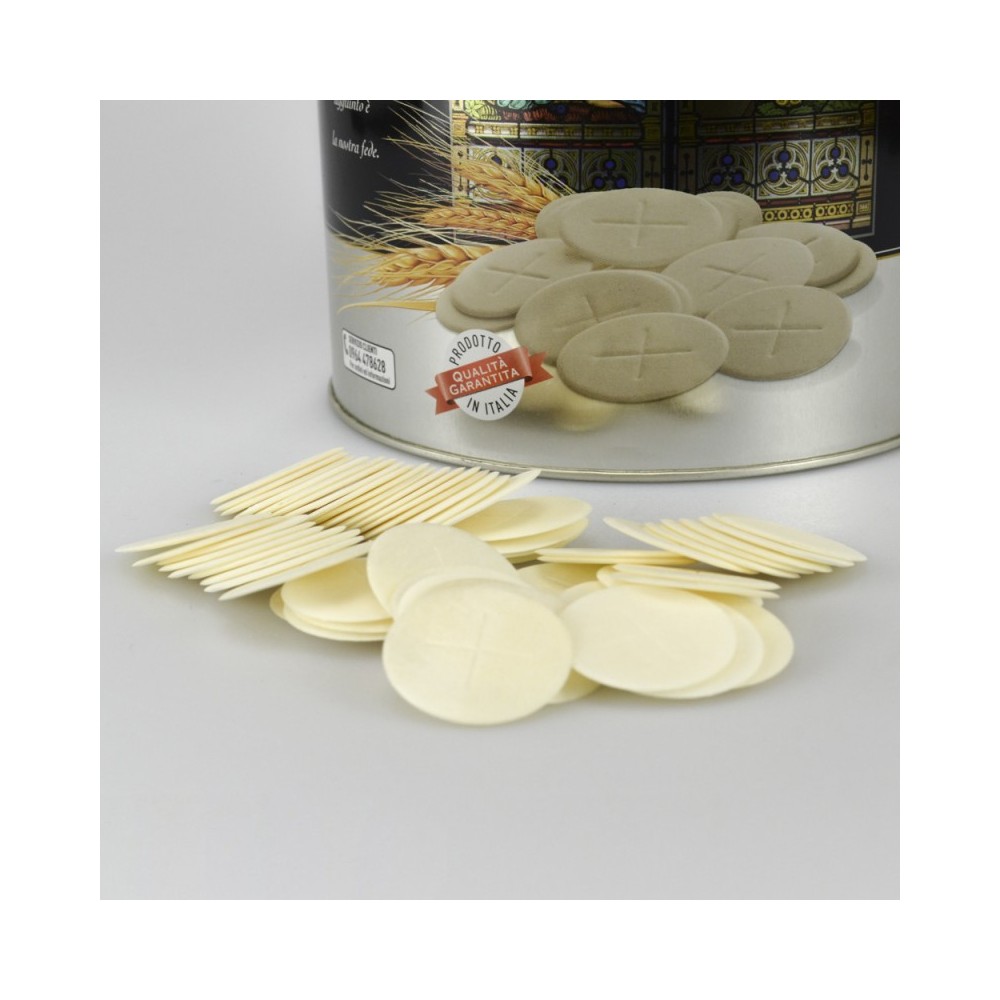 Queste particole bianche sottili dal diametro 3,5 cm sono prodotte in Italia nel rispetto delle normative liturgiche e alimentari per la massima qualità e sicurezza.