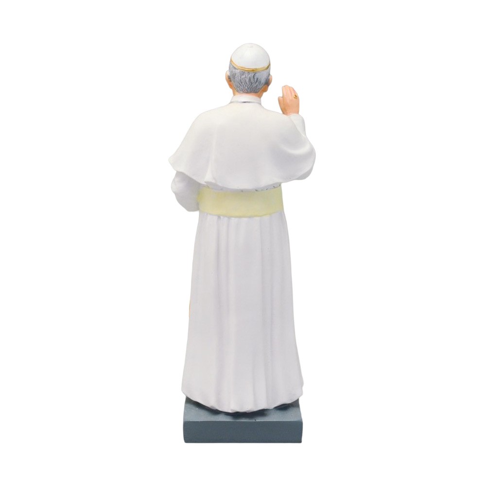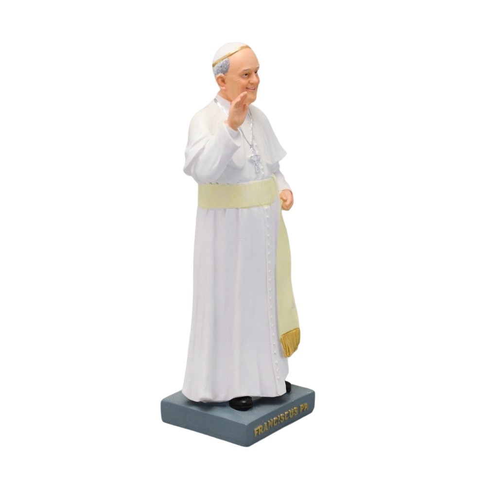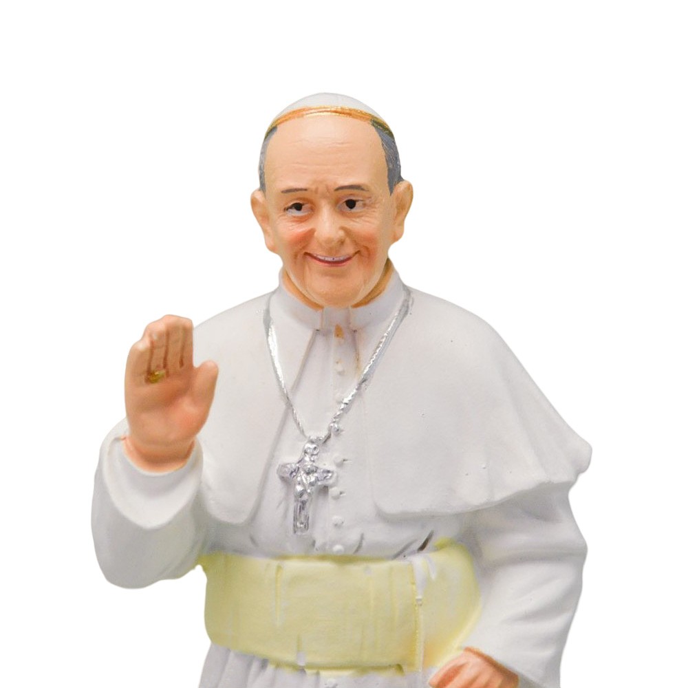 Statua di Papa Francesco Bergoglio disponibile in tre misure 10 / 15 / 20 cm. Realizzata in resina vuota. Dipinta a mano. Completa di scatola trasparente. Made in Italy.