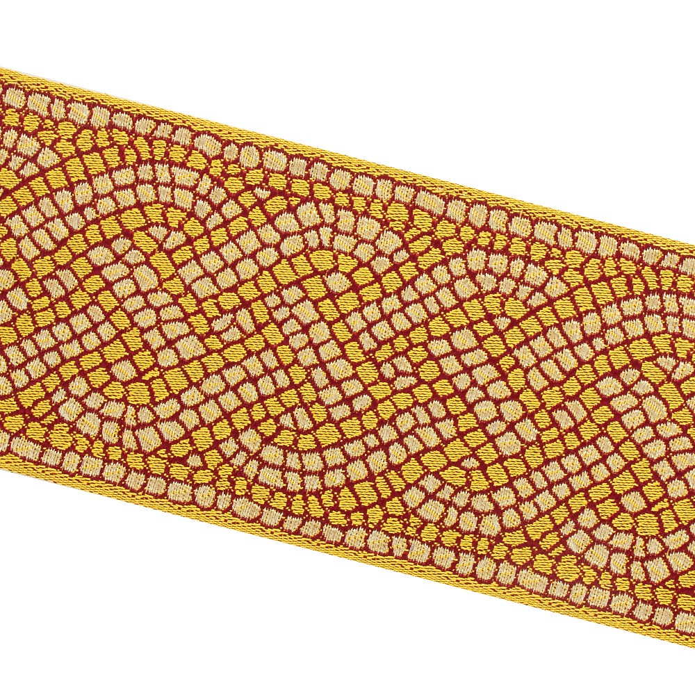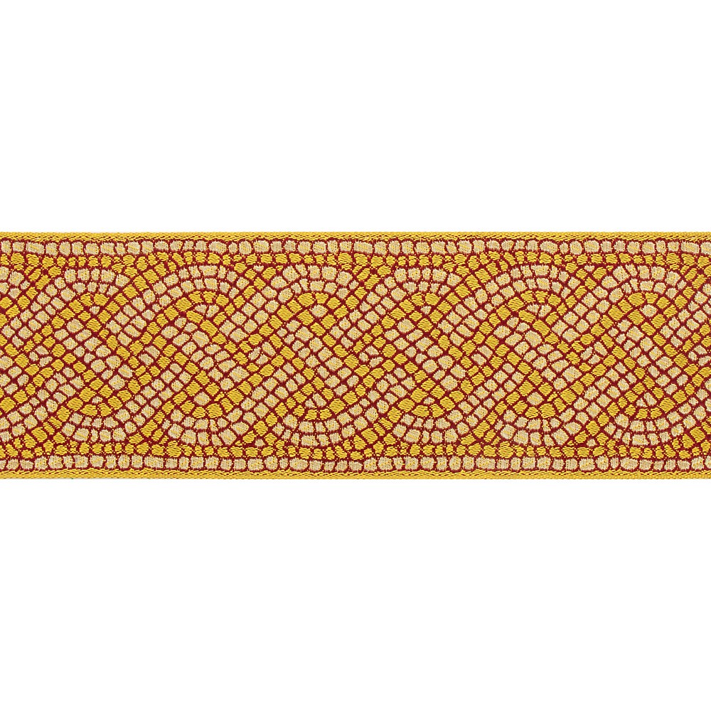 Gallone oro e rosso con ricamo motivo mosaico antico.