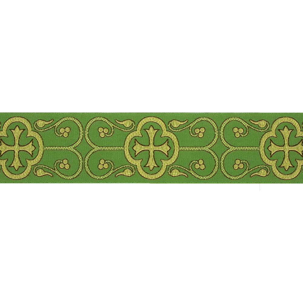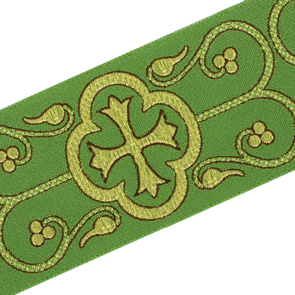 Bordo gallone oro e verde per paramenti sacri finemente ricamato.