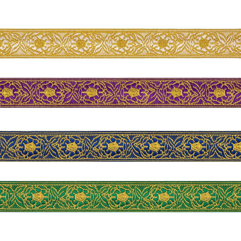 Passamaneria ricamata con fiori ricamati , con base in diverse colorazioni: