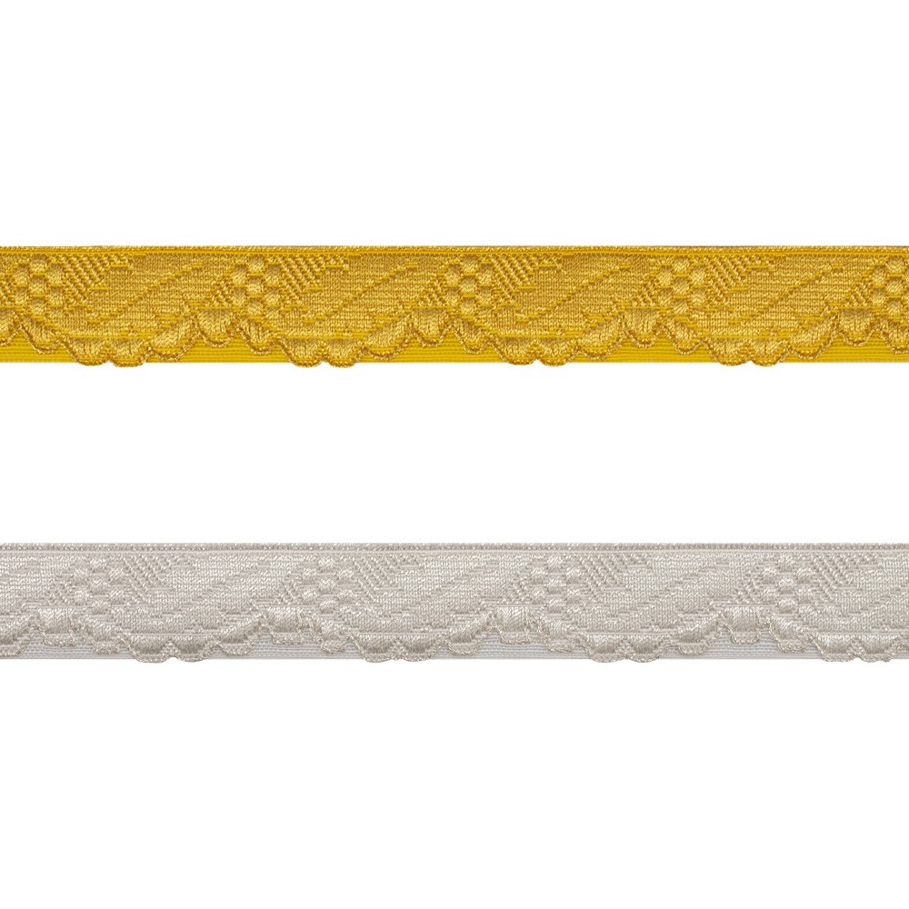 Passamaneria Bordo Colonna di colore oro e argento alta 2 cm. Questi bordi sono lavorati e realizzati in Italia e si possono avere in due colori Oro e Argento.