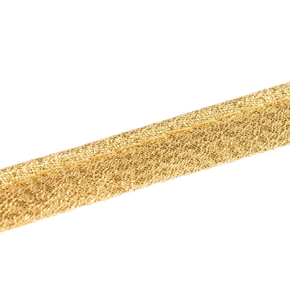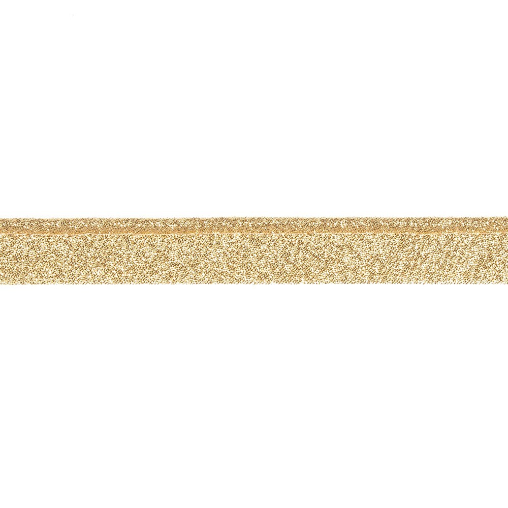 Nastro in sbieco laminato color oro, realizzato in lurex donando un'ottima luminosità. Adatto per bordatura di paramenti sacri. Articolo di ottima qualità, 100% italiano.