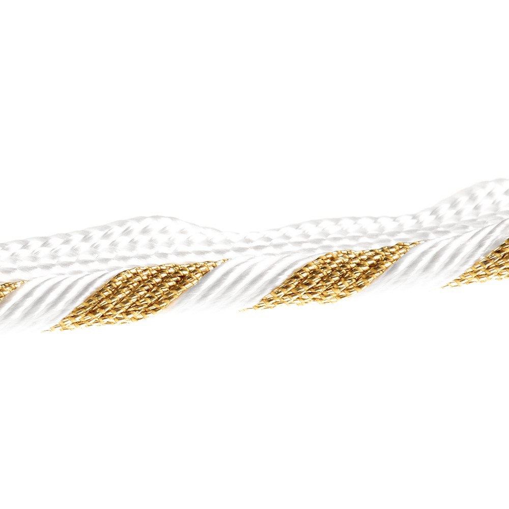 Passamaneria: Cordone oro e bianco con fettuccia di colore bianco.