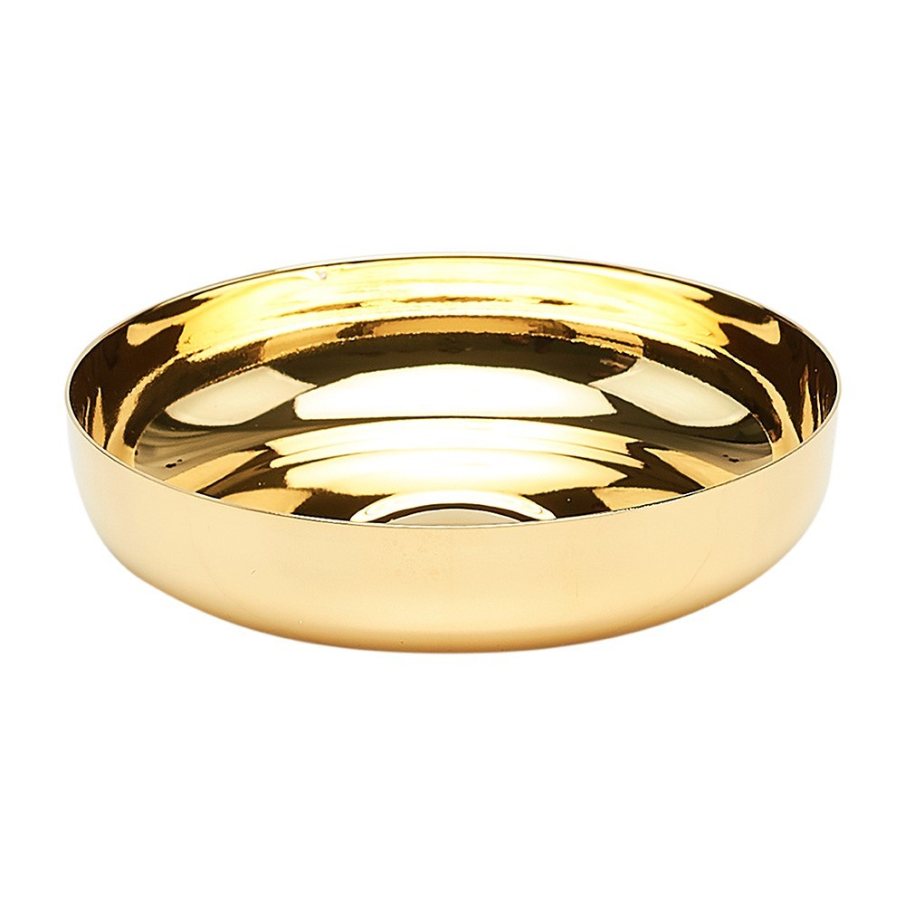 Patena offertoriale senza base, realizzata interamente in ottone dorato.