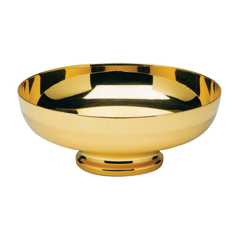 Patena liturgica in ottone dorato lucido.