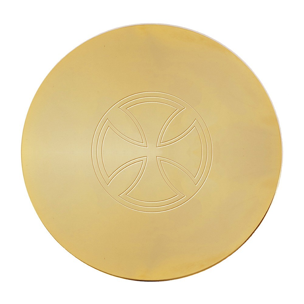 Patena eucaristica in ottone dorato con incisione della "Croce Consacrazione".