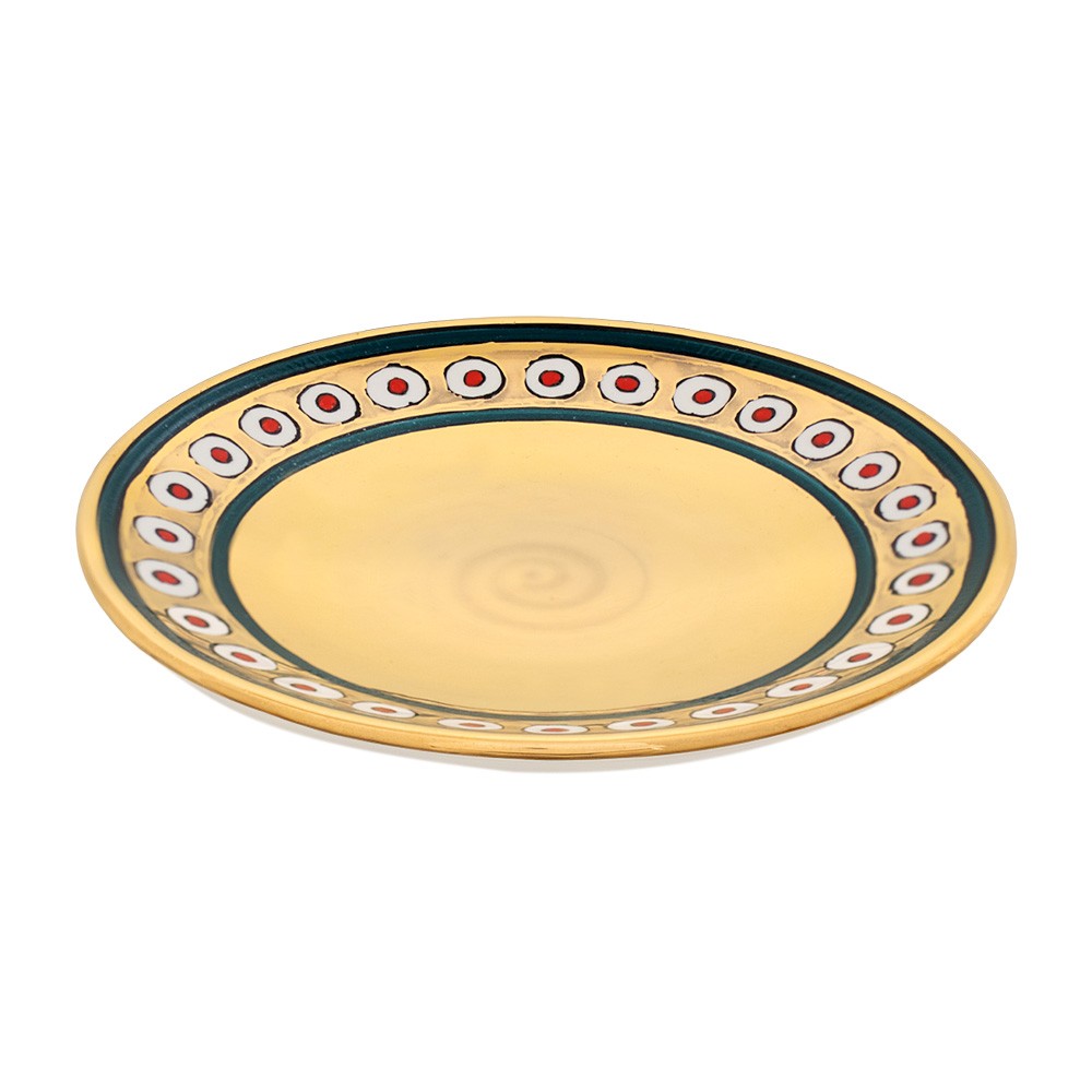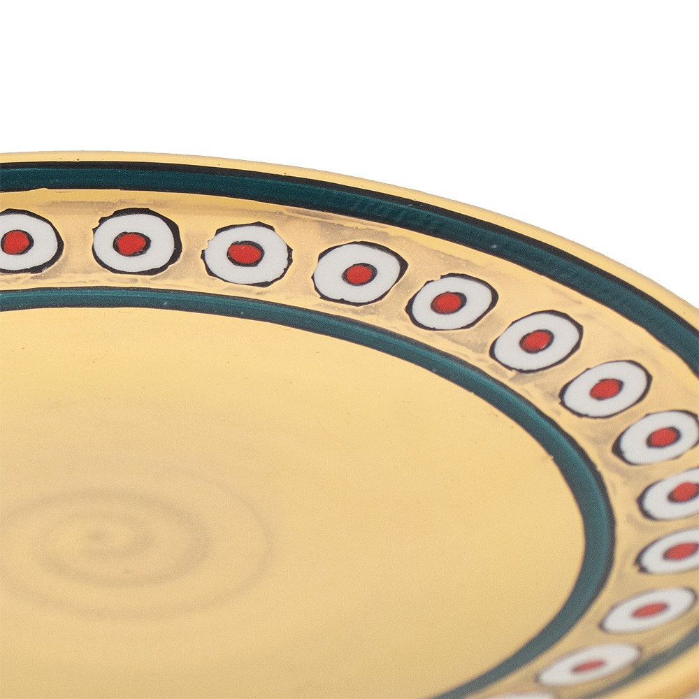 Patena liturgica in "stile graffito" in ceramica oro e decorata.