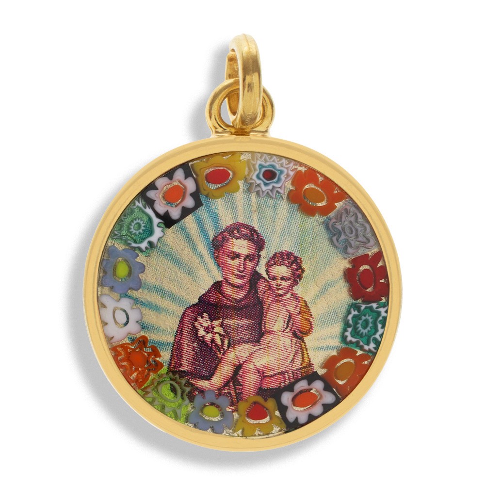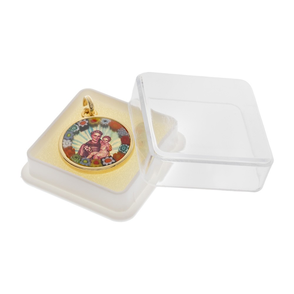 Medaglietta di Sant'Antonio realizzata in vetro di murano e montatura in metallo oro.