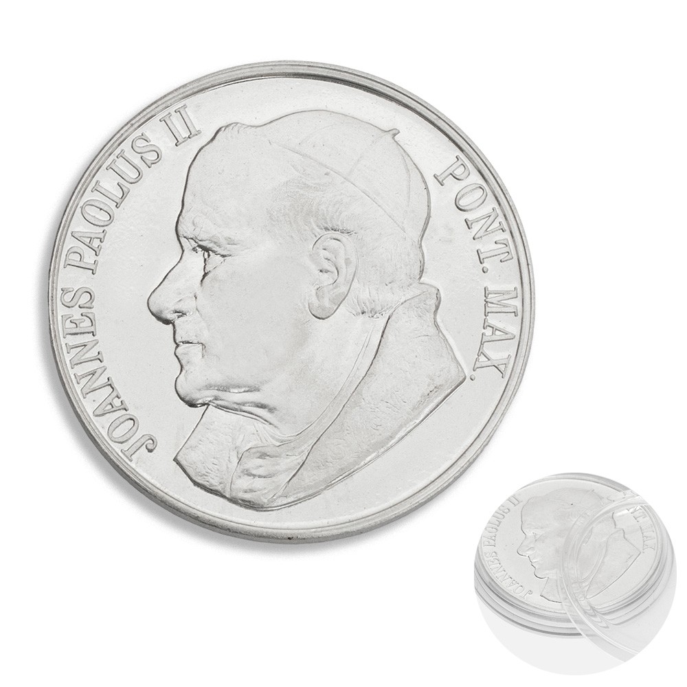 Moneta medaglia di Papa Giovanni Paolo II in metallo argento con raffigurazione sul retro della Madonna Czestochowa (detta anche Madonna nera).
