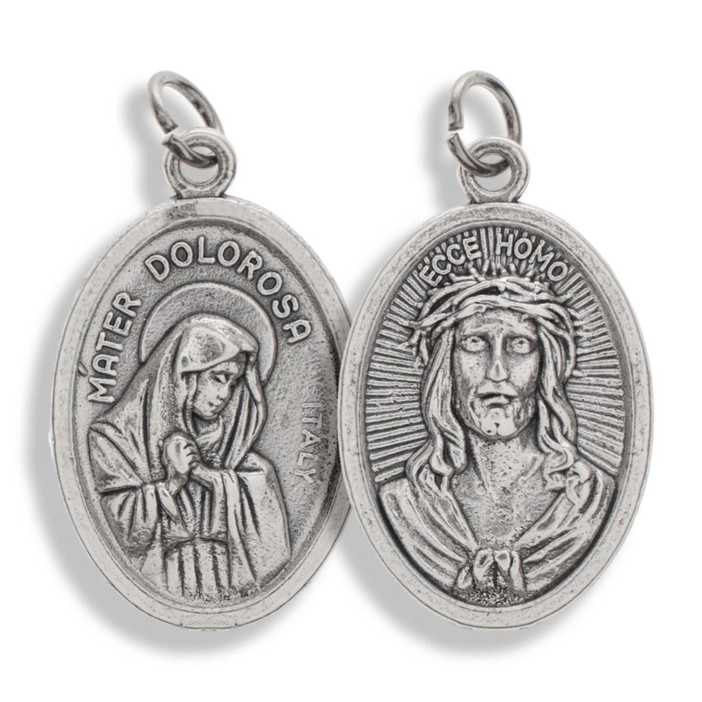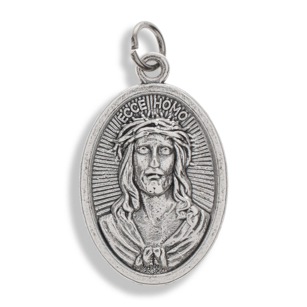 Medaglia ovale ECCE HOMO in metallo argentato, dotata di anellino apribile, è perfetta come articolo religioso da portare sempre con sé o da regalare.