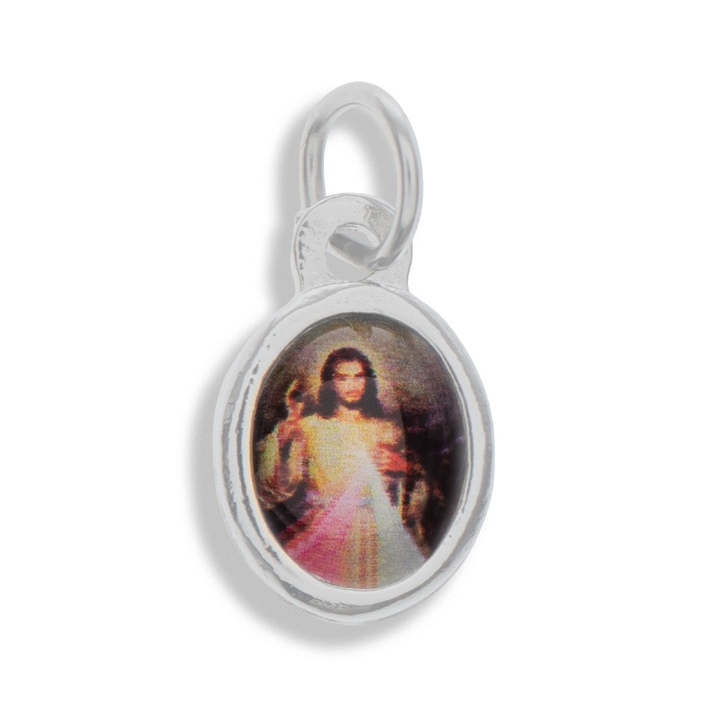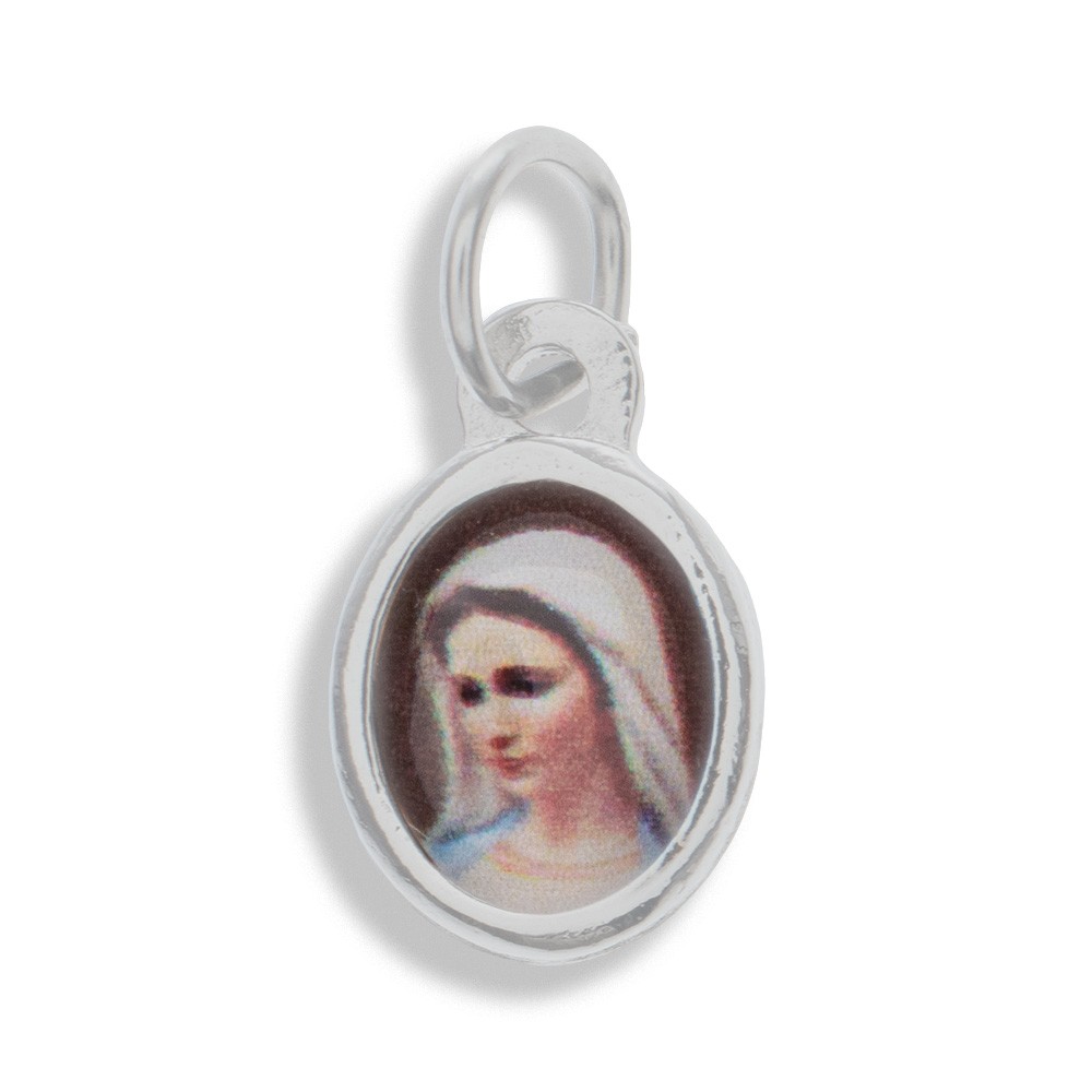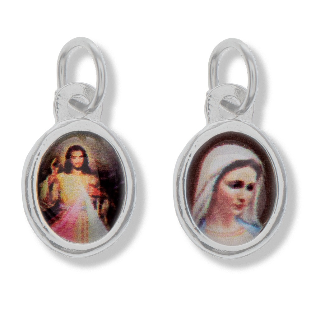 Medaglietta ovale di piccole dimensioni, da un lato vi è la Madonna e dall'latro lato è raffigurato Gesù Misericordioso.