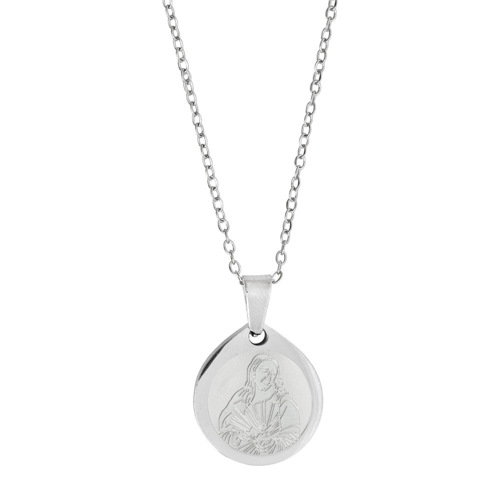 Collana con medaglietta della Madonna del Carmine. La medaglietta e la catenina sono in acciaio inox completa di gancio per l'apertura e chiusura.