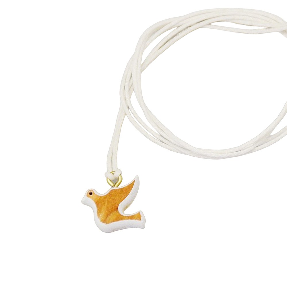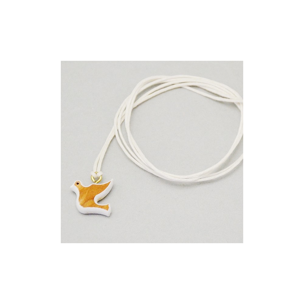 Realizzato in legno di ulivo a forma di Colomba dipinta di bianco, con cordoncino di colore bianco. Ideale come regalo e ricordino per il sacramento della Cresima.