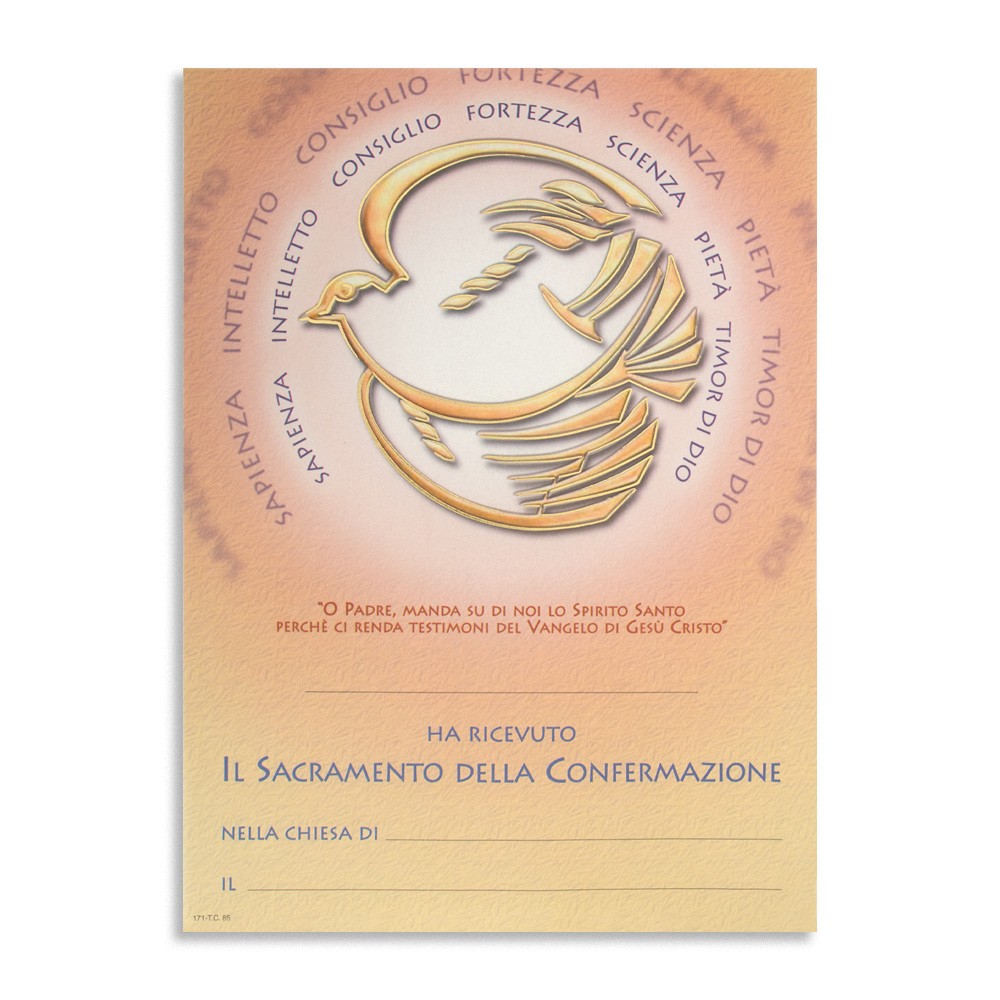 Diploma su carta pergamena per la celebrazione della Cresima Confermazione.