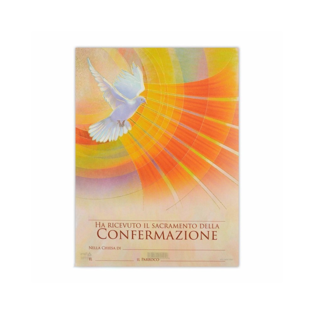Pergamena ricordo da donare ai ragazzi il giorno della Cresima. La pergamena raffigura i simboli del Sacramento della Cresima. Sulla Cartolina bisogna inserire il nome di chi riceve il Sacramento, data e luogo dove viene celebrato.