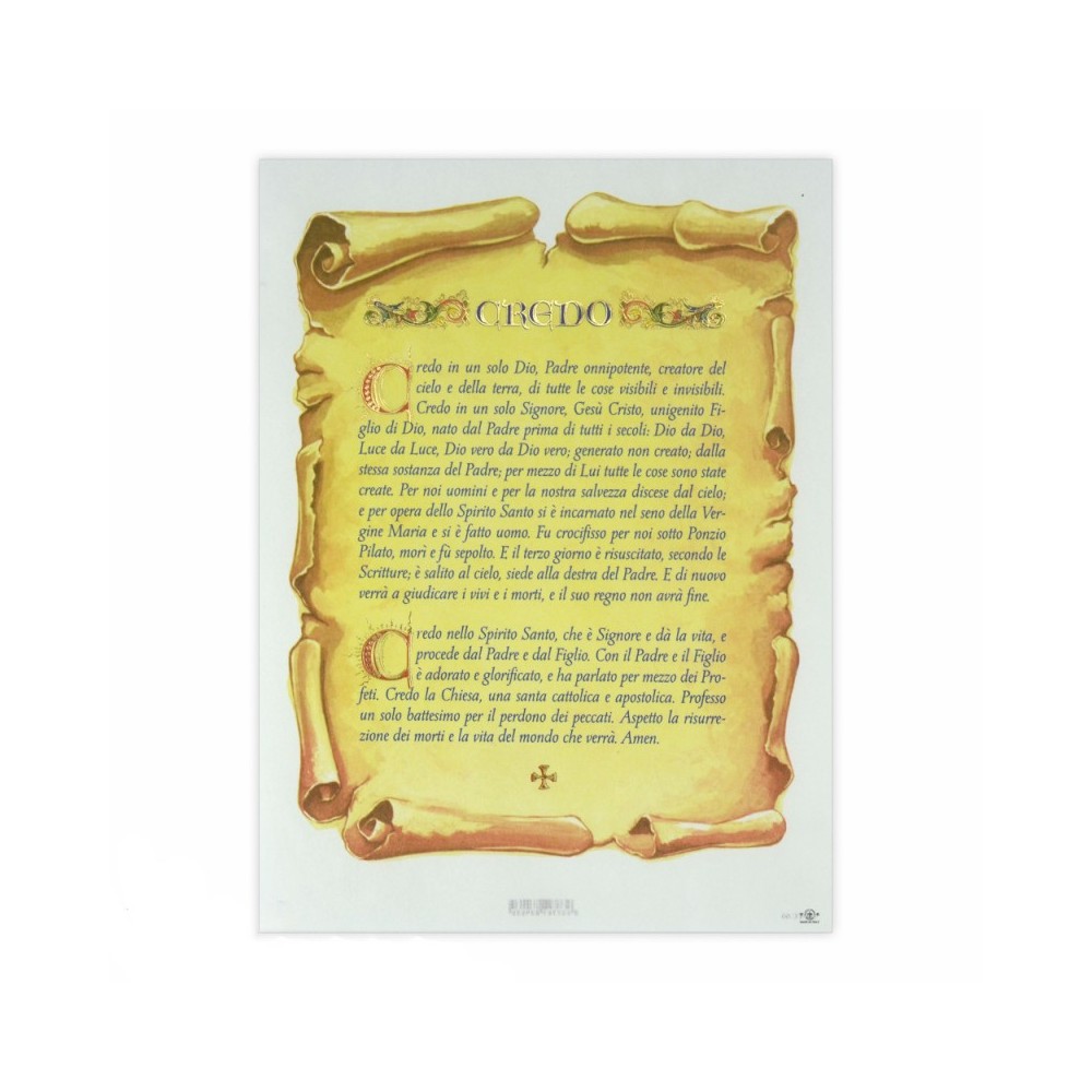 Pergamena ricordo con preghiera del Credo. Formato 18 x 24 cm. Idea ricordo da donare ai bambini il giorno della loro Prima Confessione, Prima Comunione e Cresima.
