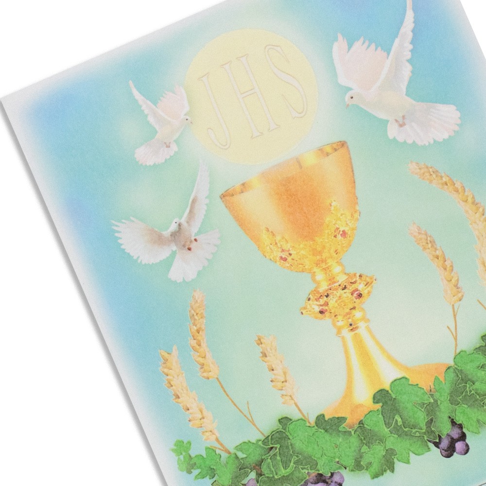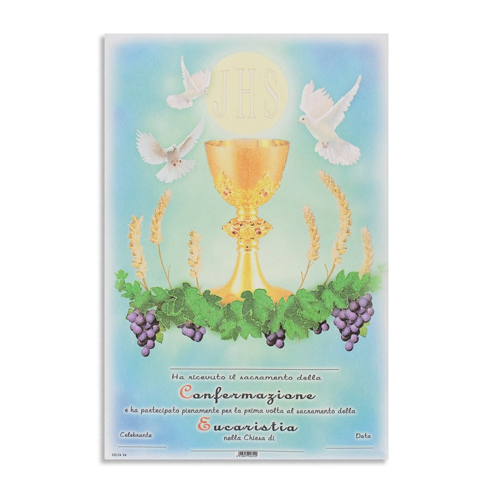 Consegna garantita in 24/48hRealizzata su carta pergamenata con immagine dei simboli eucaristici.