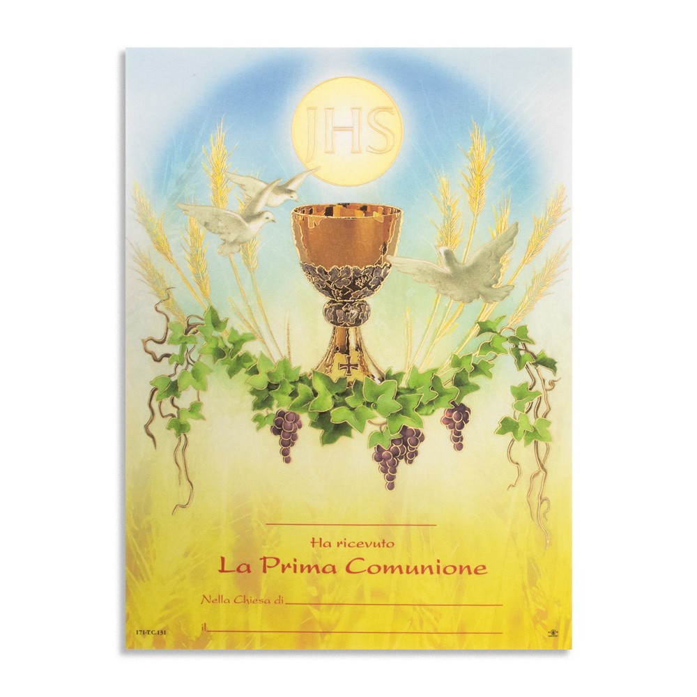 Pergamena Prima Comunione Calice e Spighe
