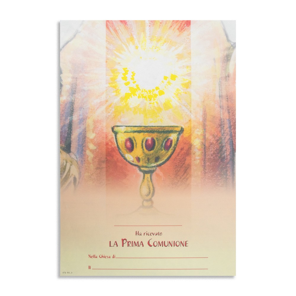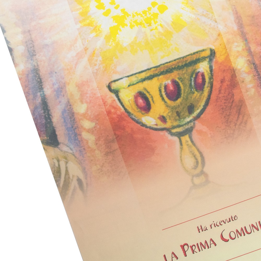 Diploma pergamena per il ricevimento della Prima Comunione.