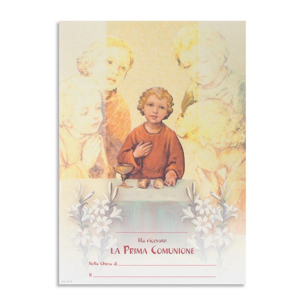 Pergamena per Prima Comunione, formato 24x17,5 cm.