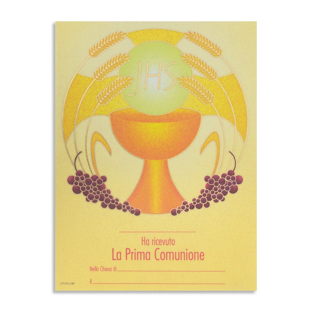 Diploma pergamena per il ricevimento della Prima Comunione.