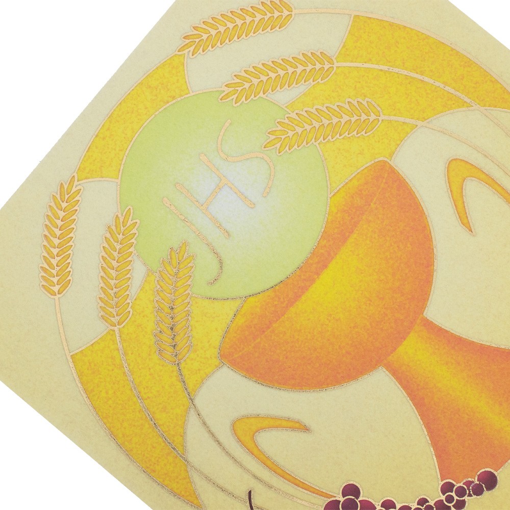 Realizzata su carta pergamenata con immagine dei simboli eucaristici.