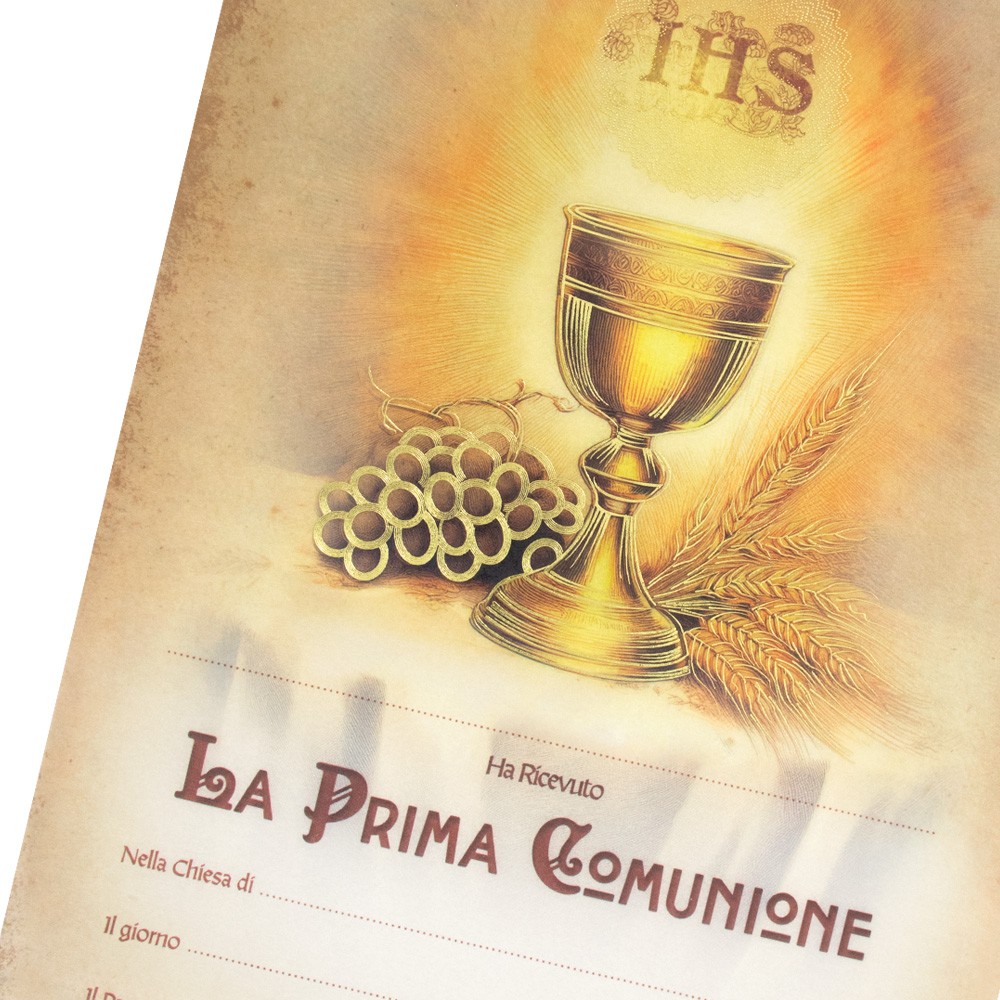 Diploma pergamena per il ricevimento della Prima Comunione.