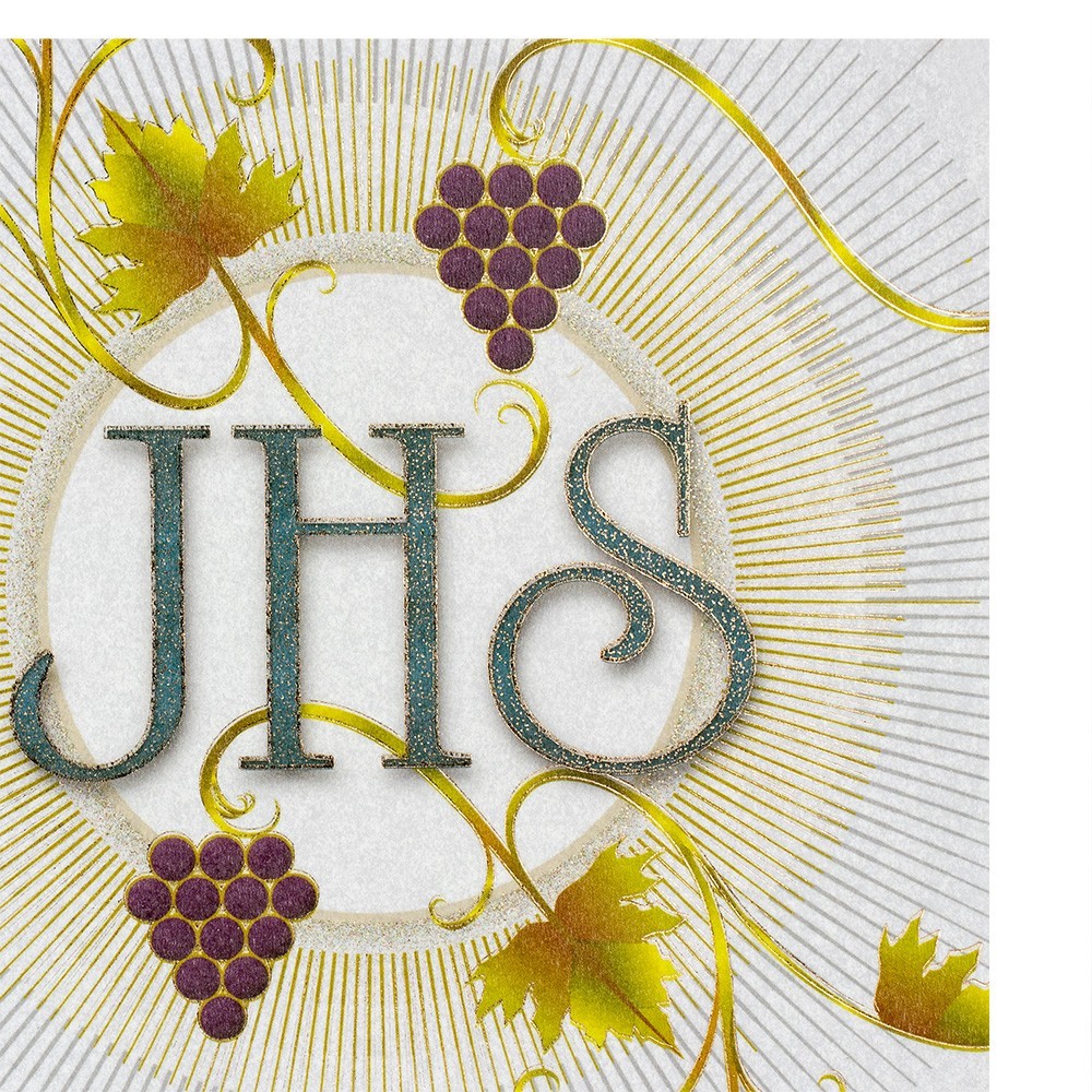 Immagine sacra Prima Comunione con stampa oro a caldo su carta pergamena. La Pergamena riporta i simboli eucaristici.