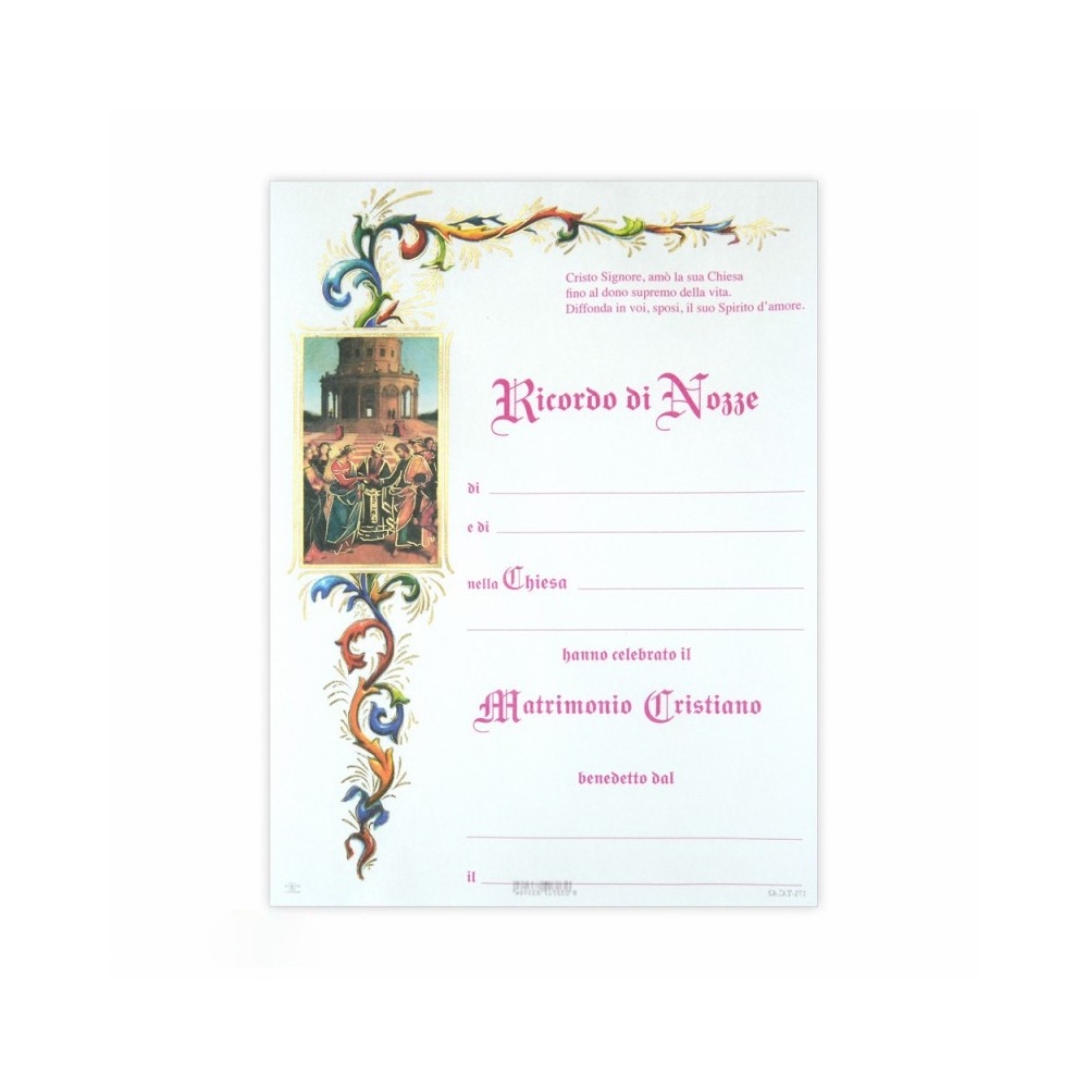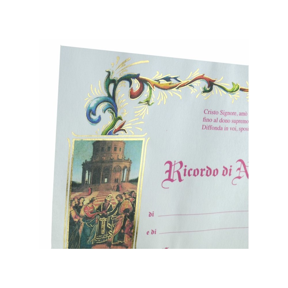 Attestato Pergamena con immagini raffigurate delle Nozze di Cana, come ricordo per la celebrazione dell'Anniversario di Matrimonio.