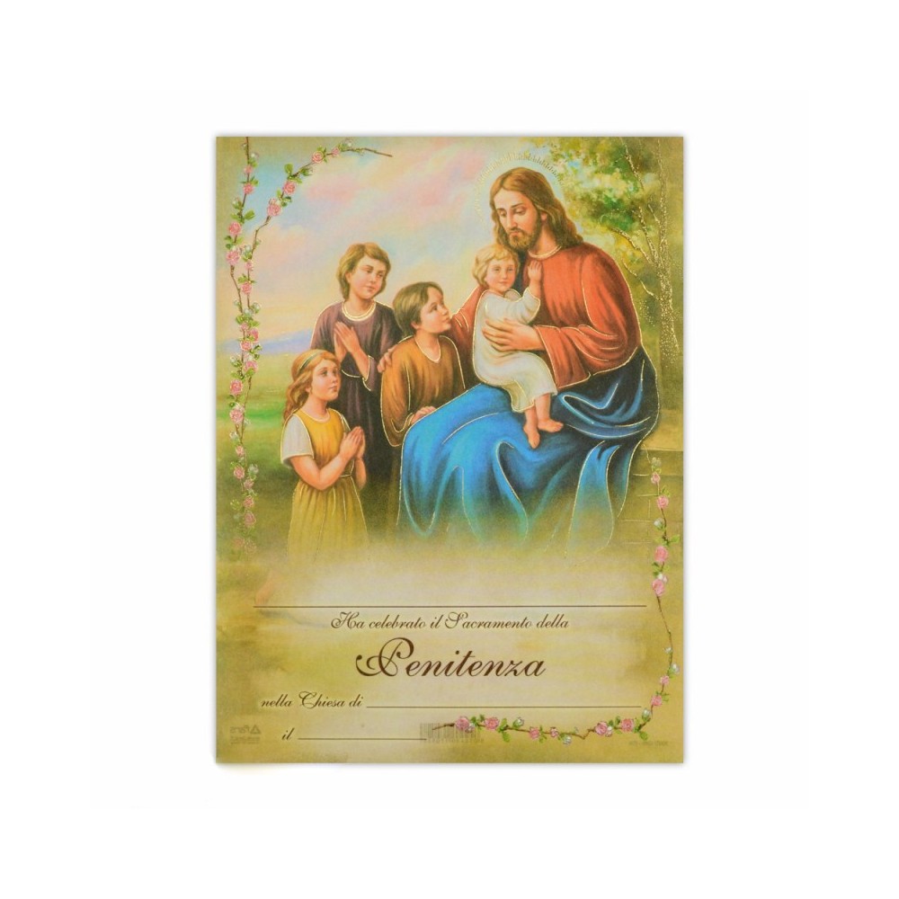 Pergamena Ricordo Sacramento della Penitenza. Sulla Cartolina bisogna inserire il nome di chi riceve il Sacramento, data e luogo dove viene celebrato.