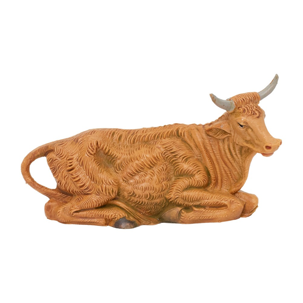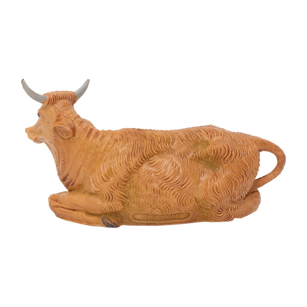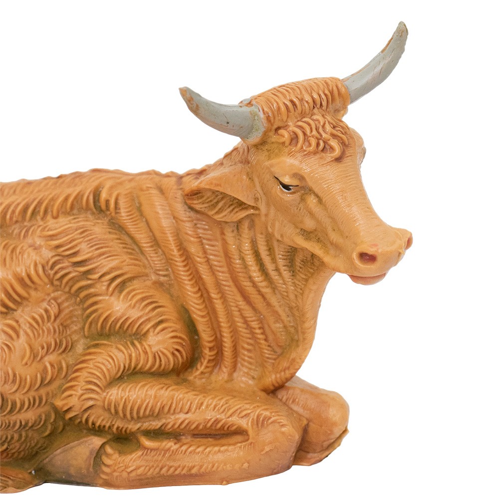 Bue proporzionato per la natività del presepe Fontanini da 10 cm. Realizzato in Italia e dipinto interamente a mano, dall'azienda Fontanini.