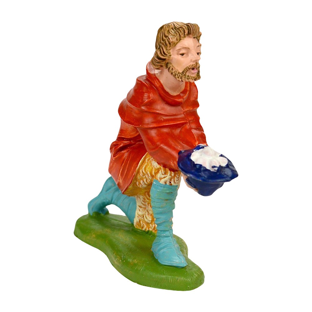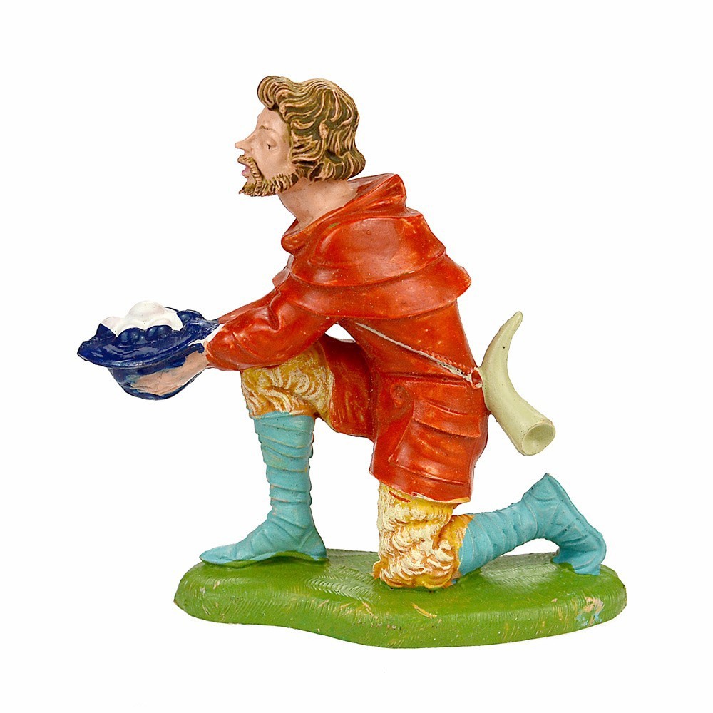 Personaggio Pastore in ginocchio con uova nel Cesto per il Presepe Fontanini da 10 cm.