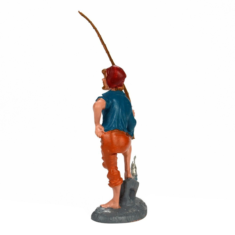 Pescatore con canna da pesca e pesce per il Presepe colorato Fontanini da 10 cm.