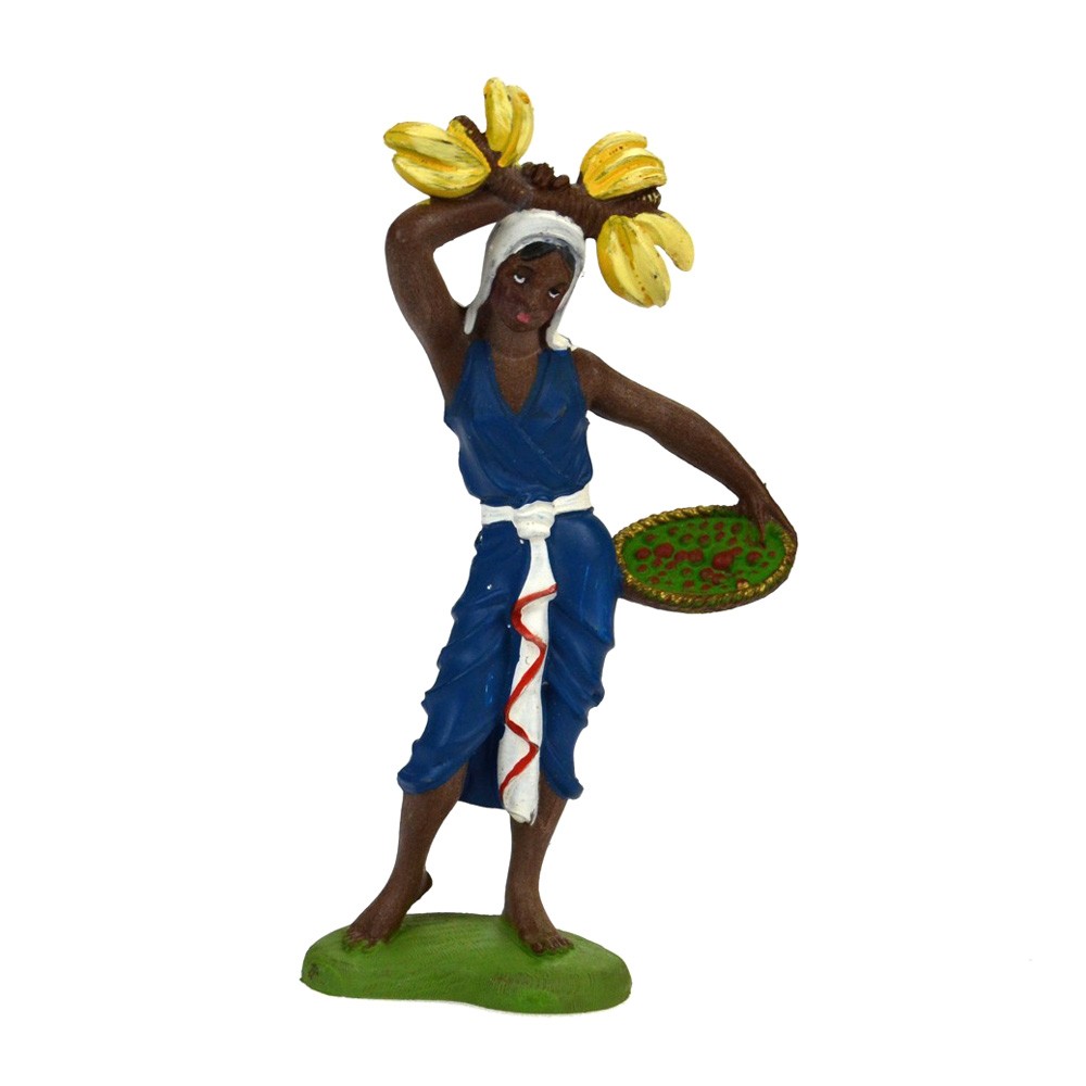 Statua Pastore Nero con banane. La statua è adatta per presepe colorato da 10 cm.