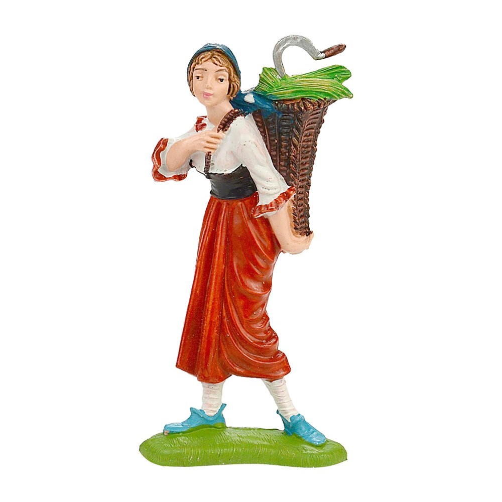 Personaggio Pastorella con gerla sulle spalle il Presepe Fontanini da 10 cm.
