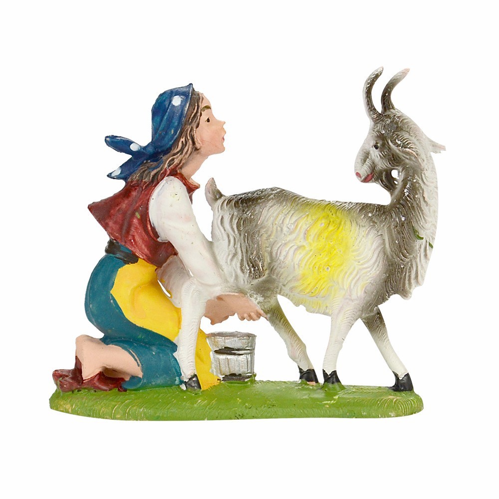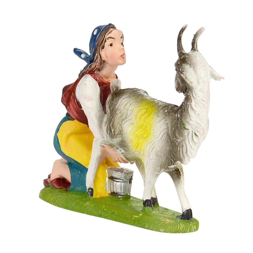 Statua FONTANINI: Pastorella che munge una capra. La statua è adatta per presepe COLORATO da 10 cm. Realizzata con materiale infrangile dall'azienda Fontanini. Dipinta a mano. Prodotto 100% italiano.