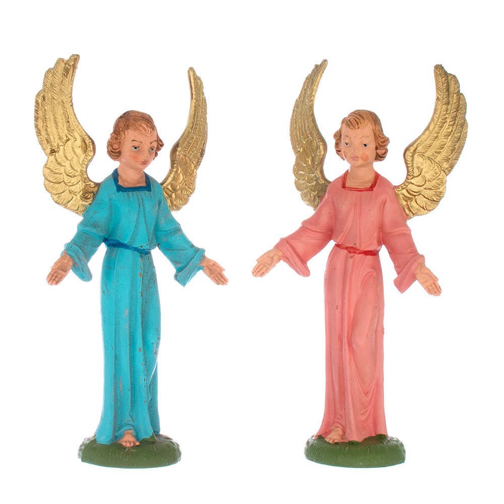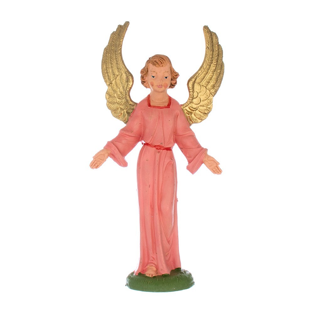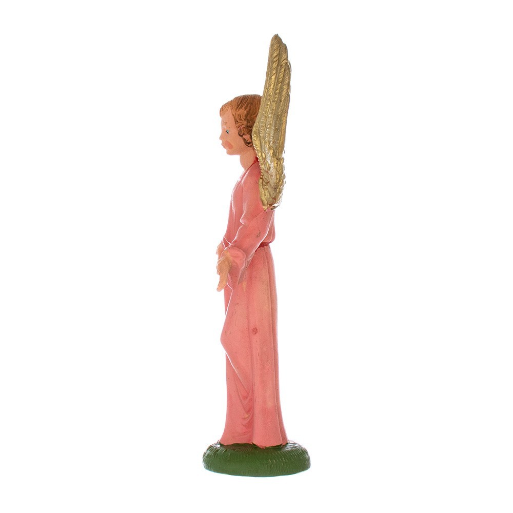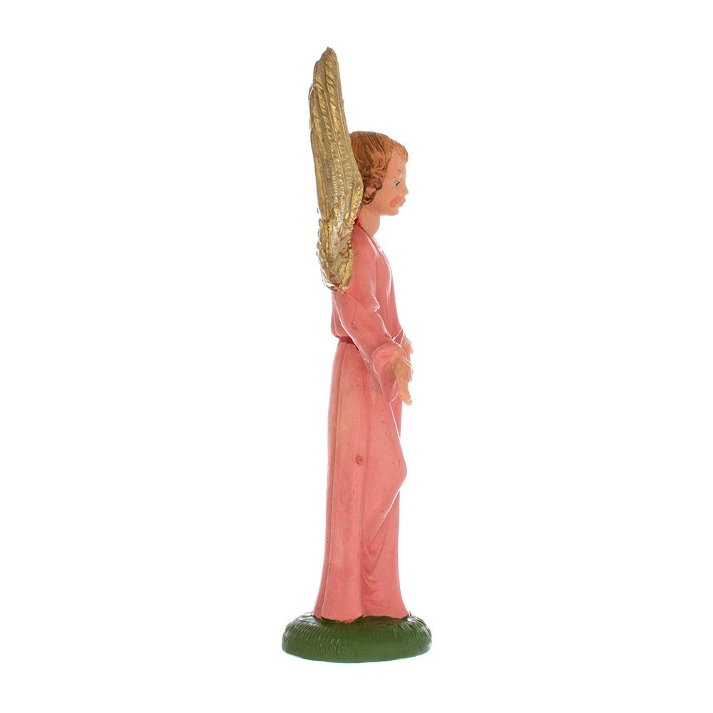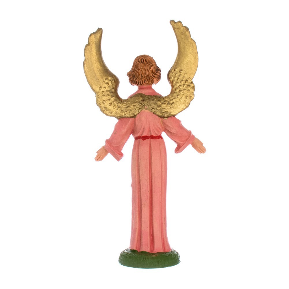 Angelo con base, con veste di colore rosa e ali dorate. La statuetta è adatta per Presepe Fontanini da 9,5 cm.
