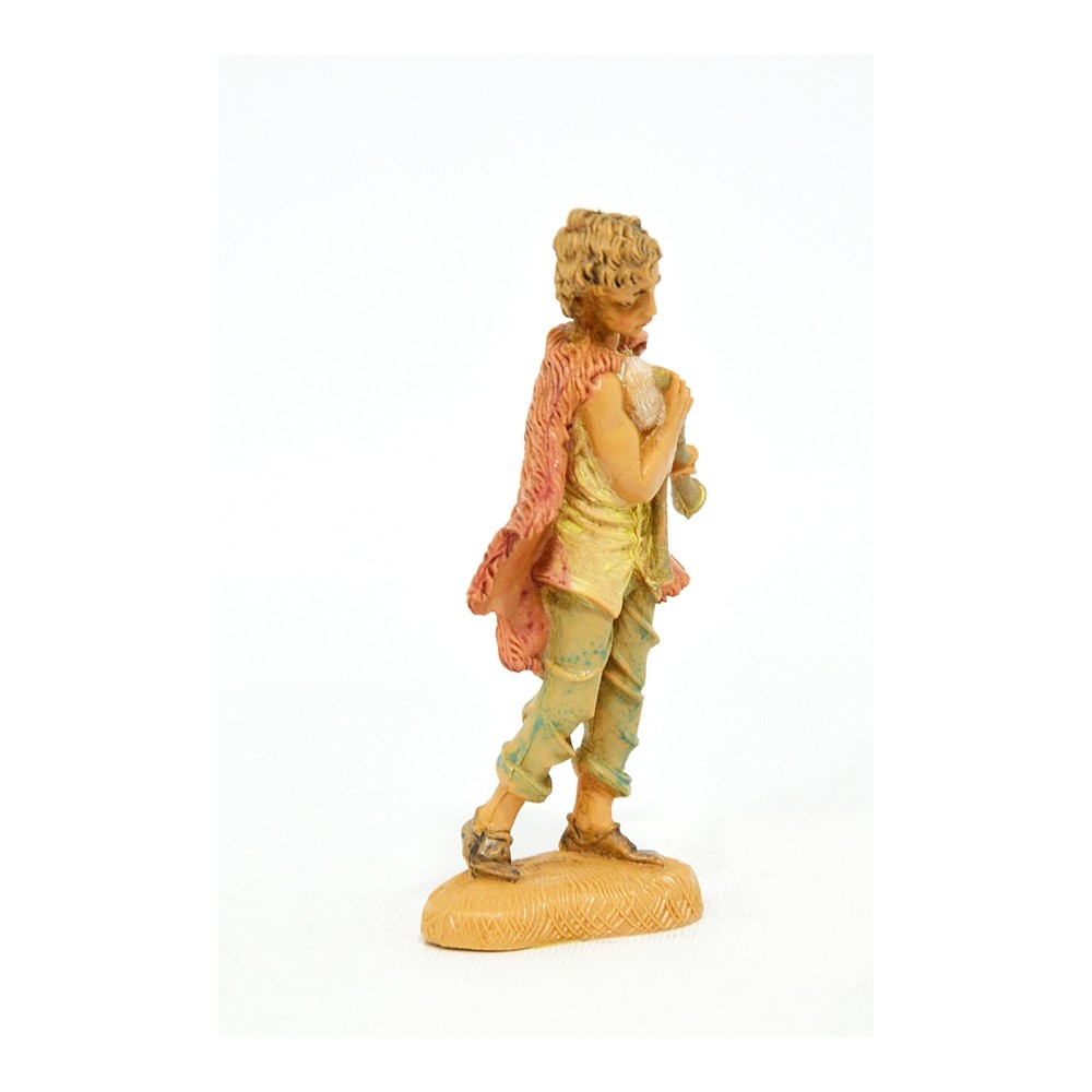 Statua del Personaggio Ragazzo Zampognaro con mantello e zampogna in mano per il Presepe Fontanini da 10 cm.
