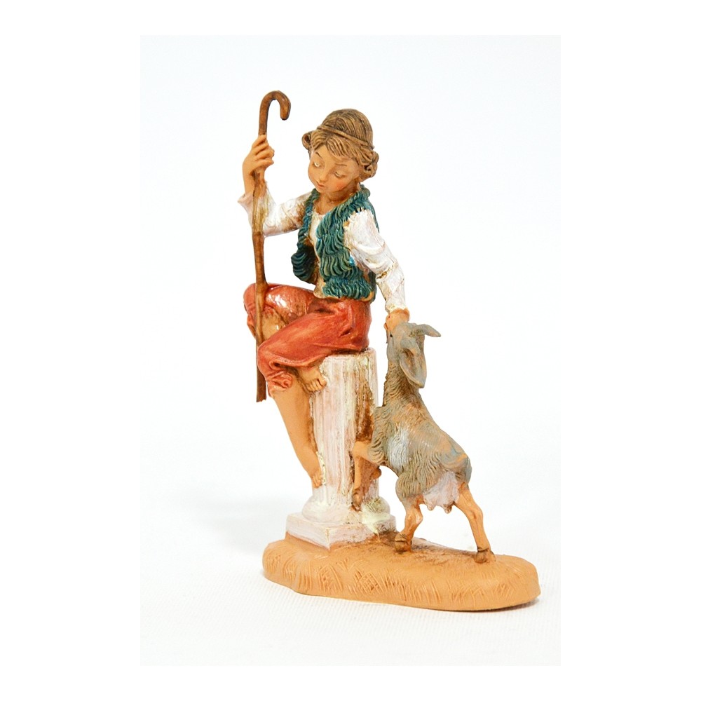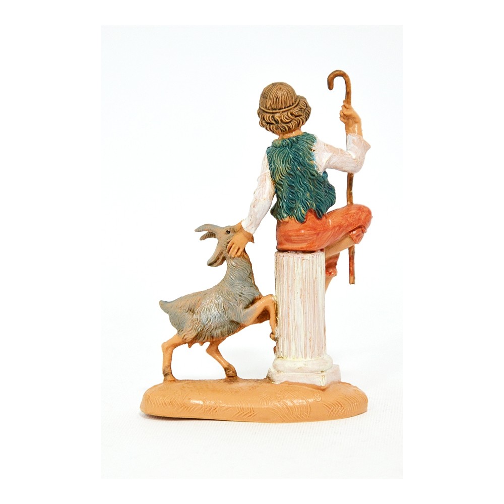 Ragazzo con Capretta seduto su una colonna con capretta per il Presepe Fontanini da 10 cm.