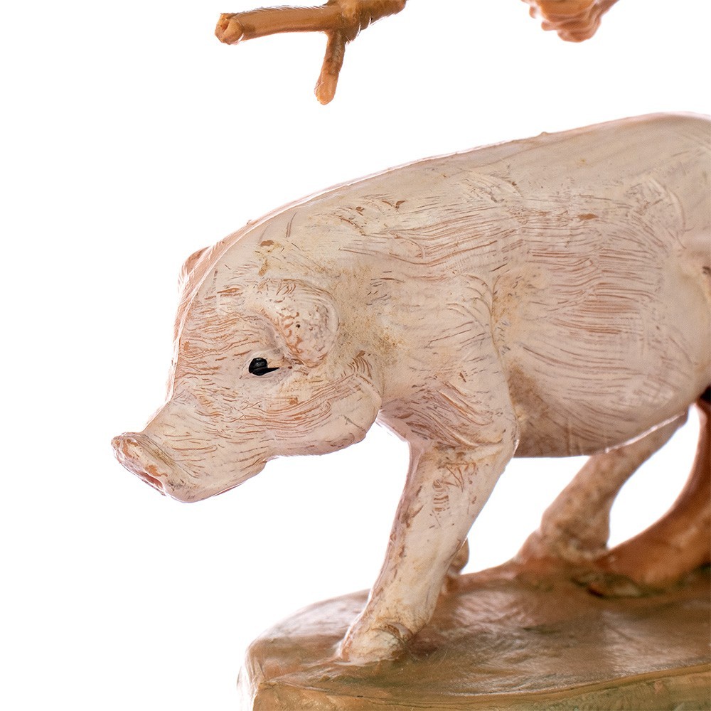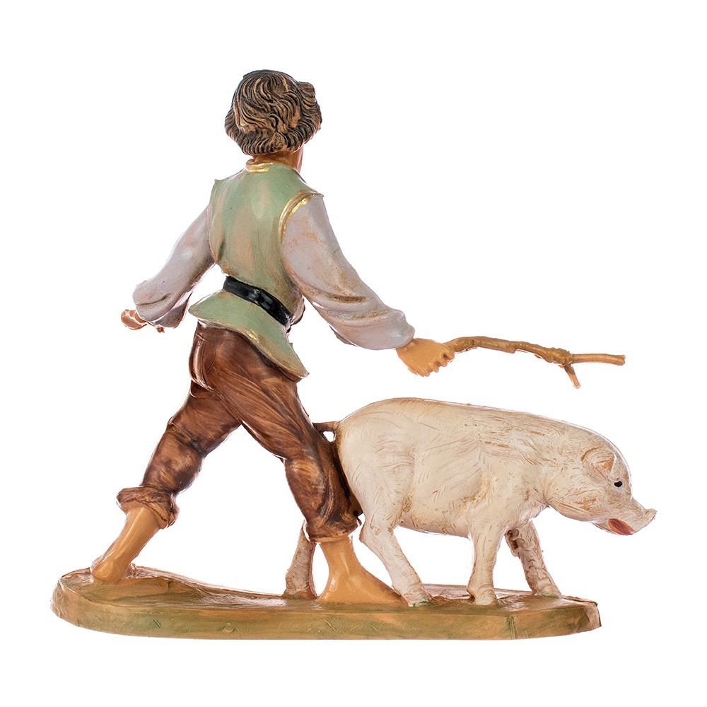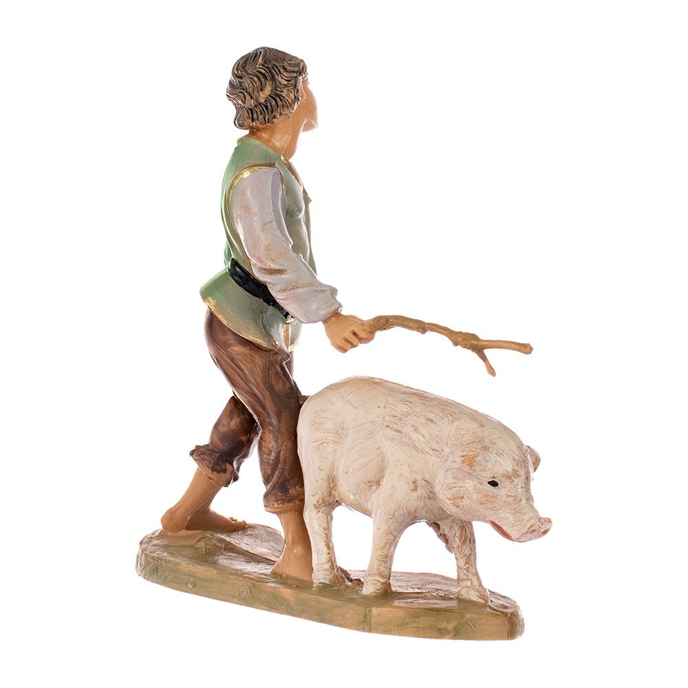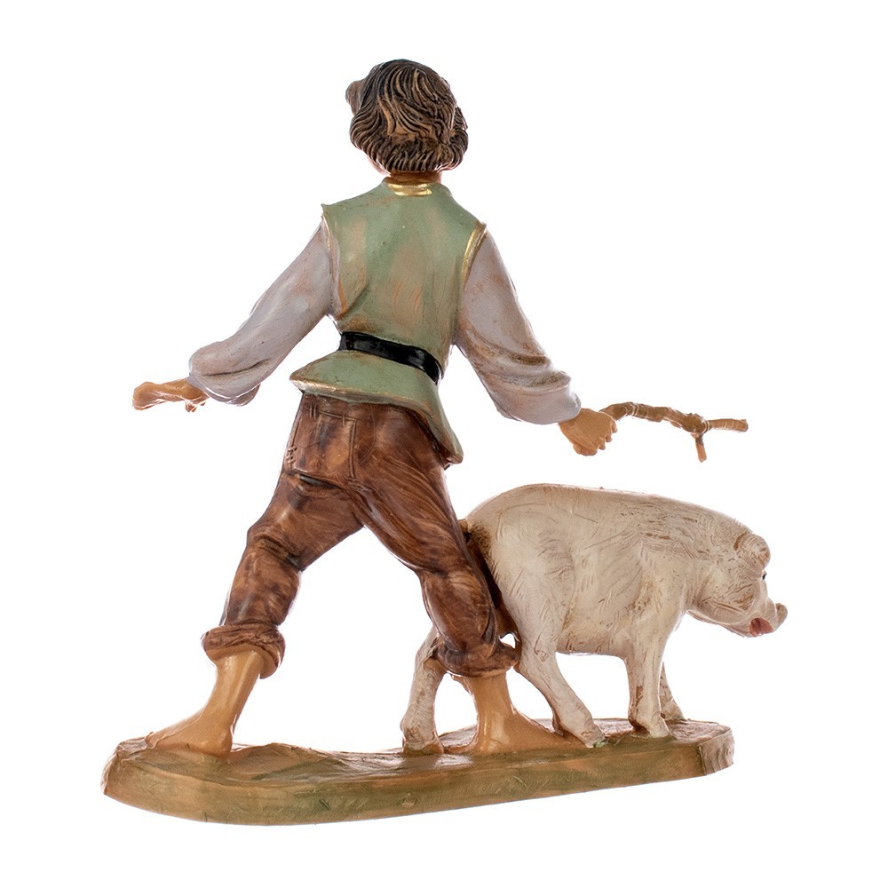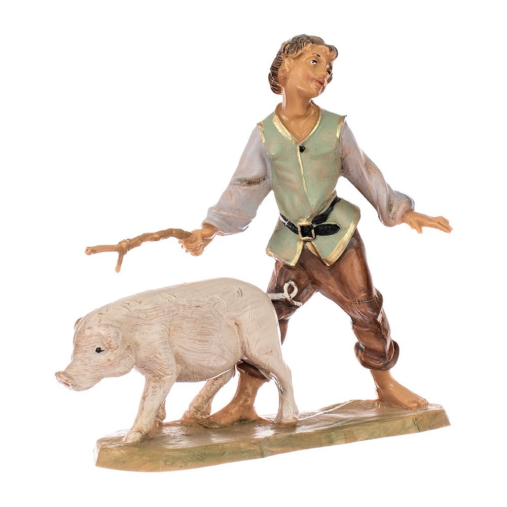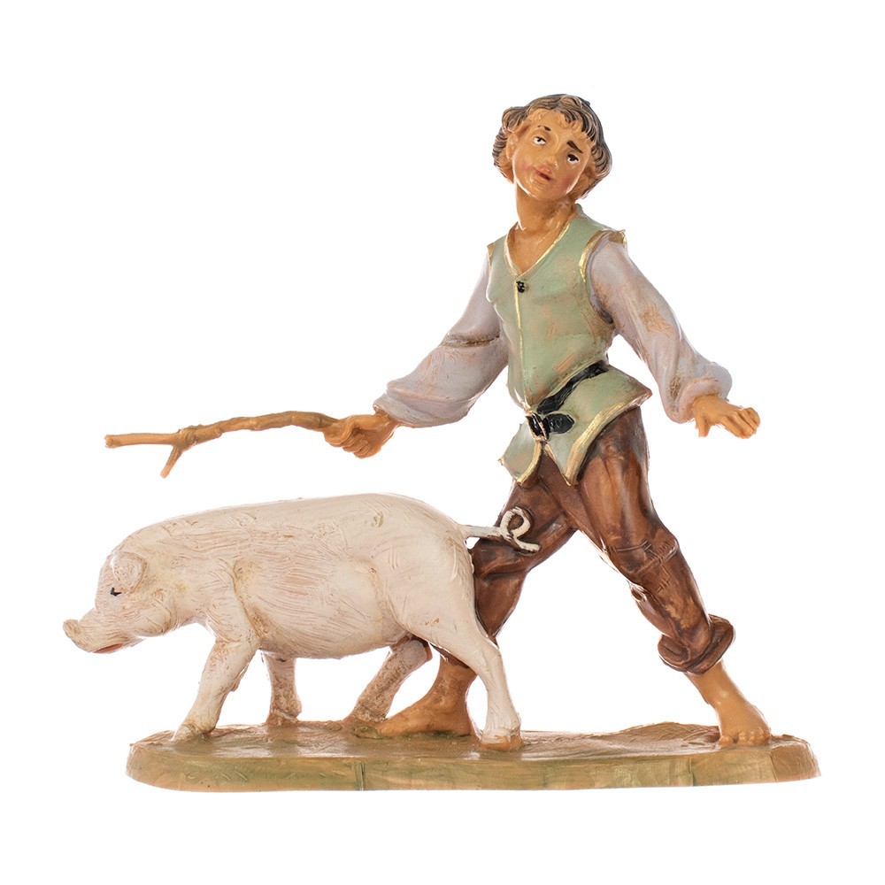 Pastore bambino con maiale al pascolo per il Presepe Fontanini da 10 cm.