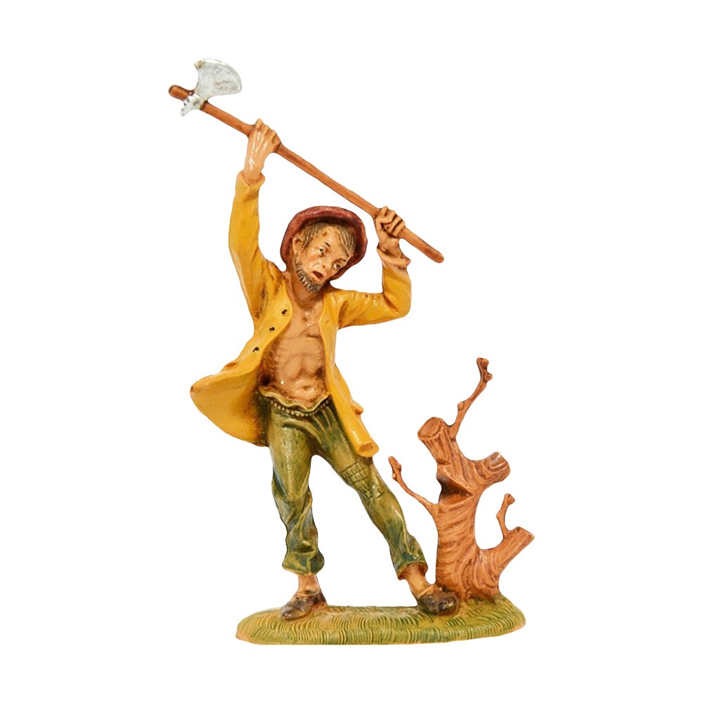 Pastore con accetta che taglia un tronco d'albero per il Presepe Fontanini da 10 cm.