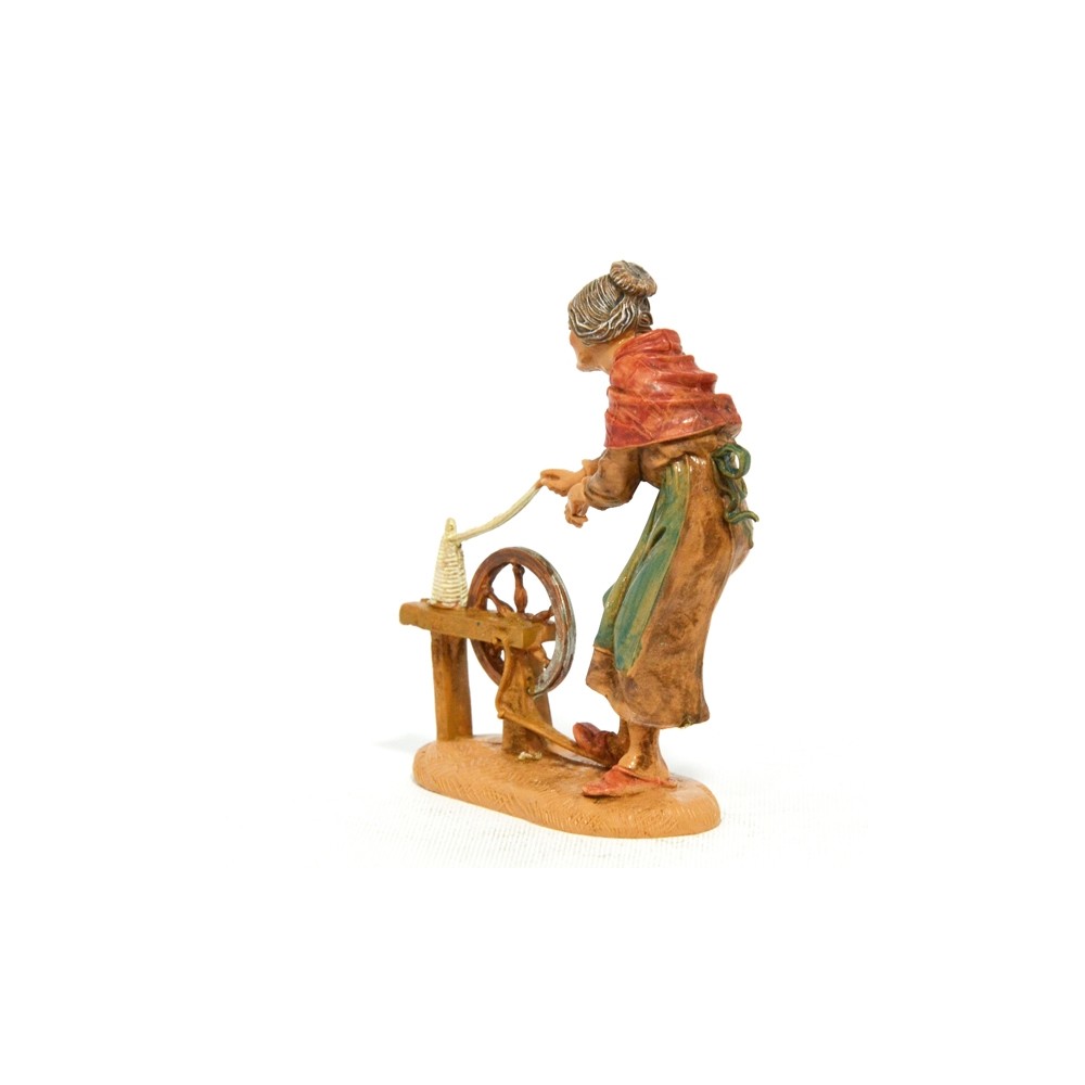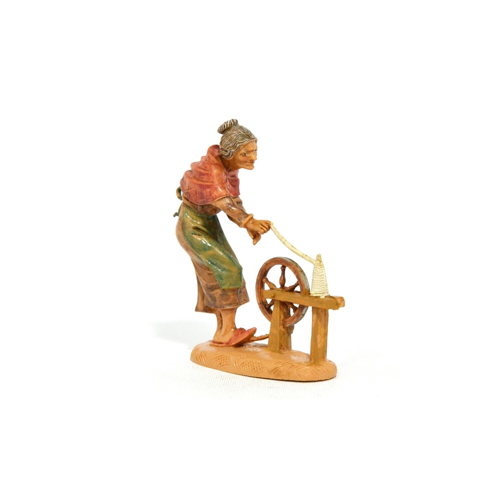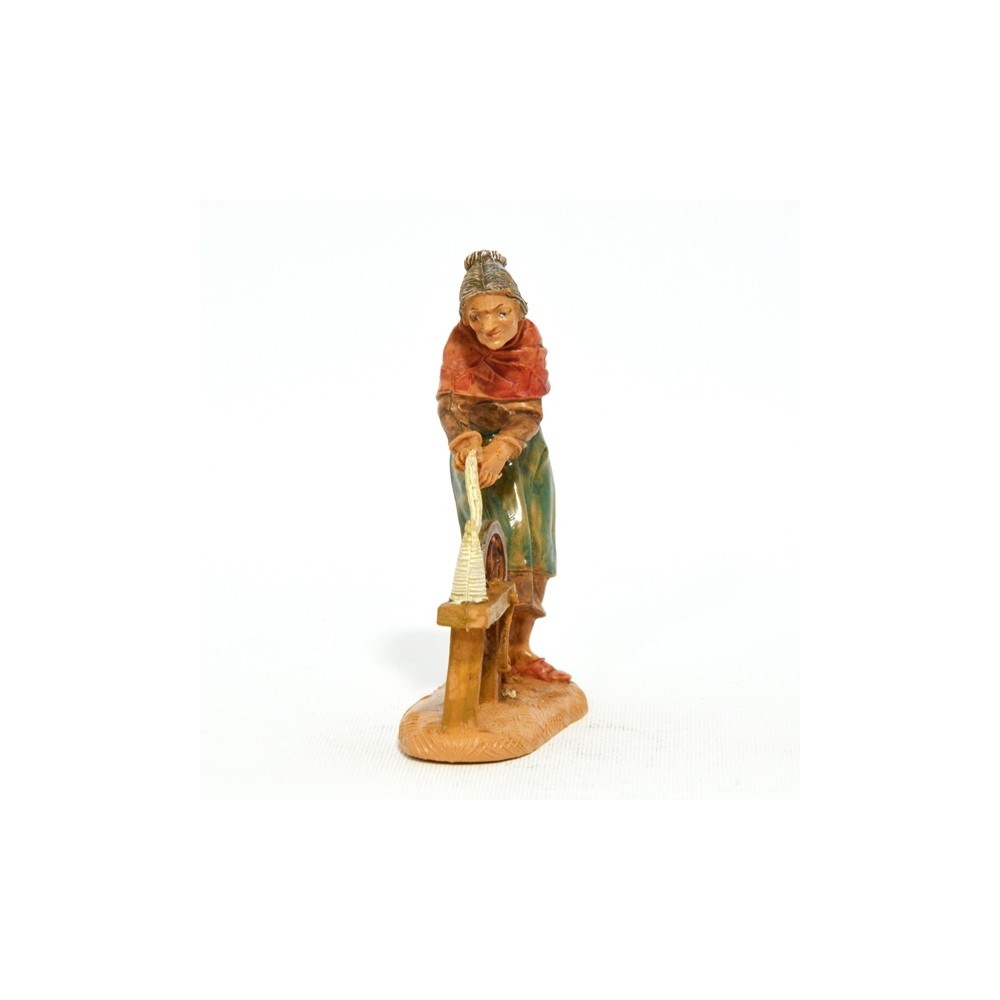 Donna anziana che fila la lana con filatoio per il Presepe Fontanini da 10 cm.