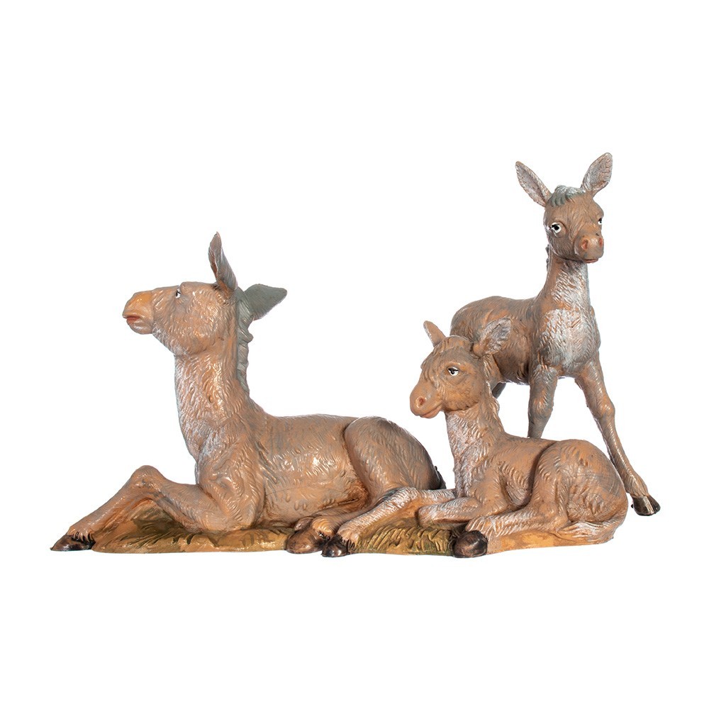 Famiglia di Asini per il Presepe Fontanini da 12 cm. Il prezzo s'intende per famiglia ( 3 soggetti).