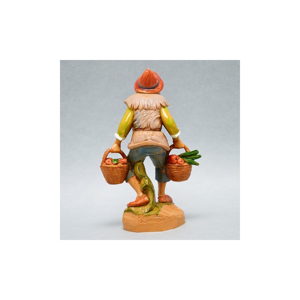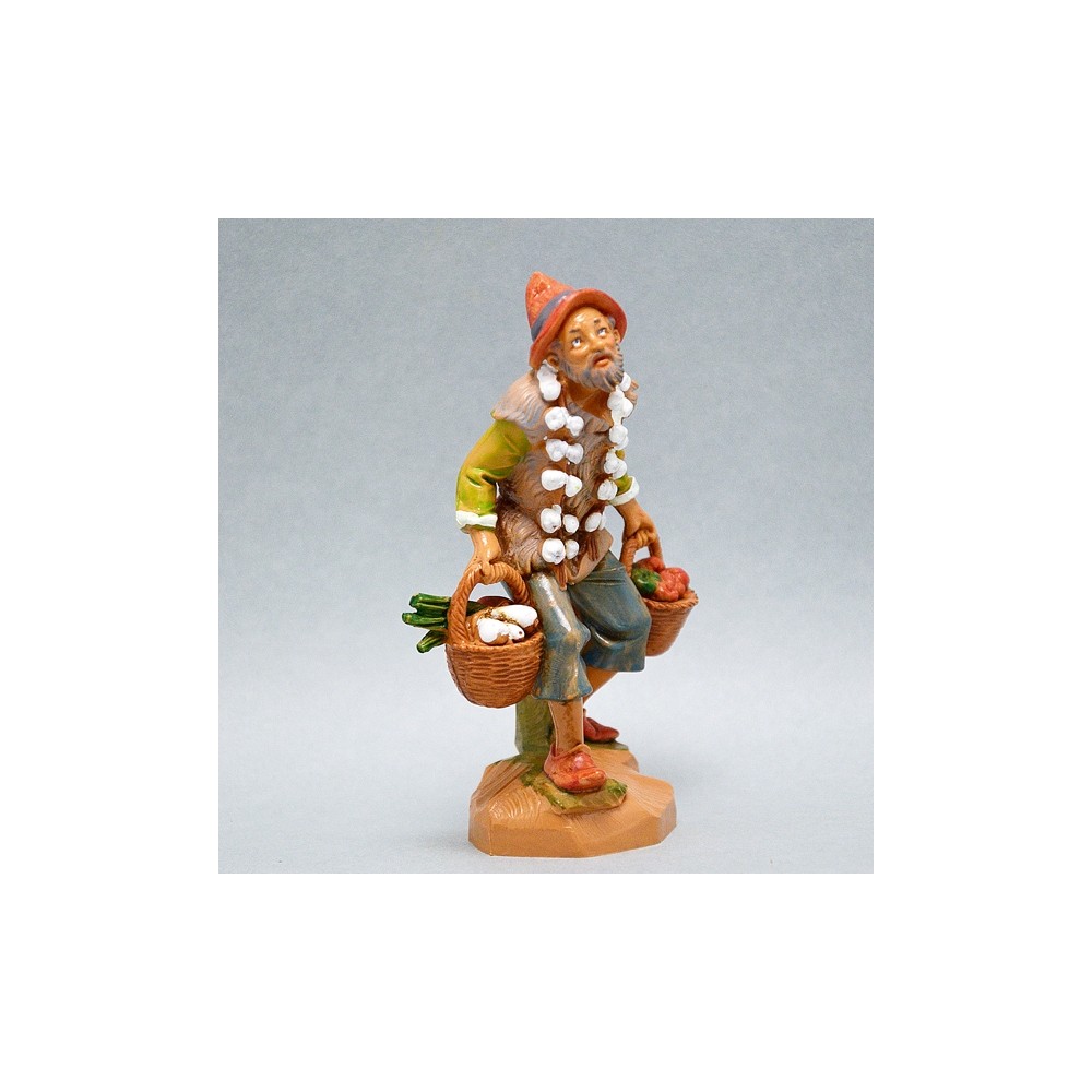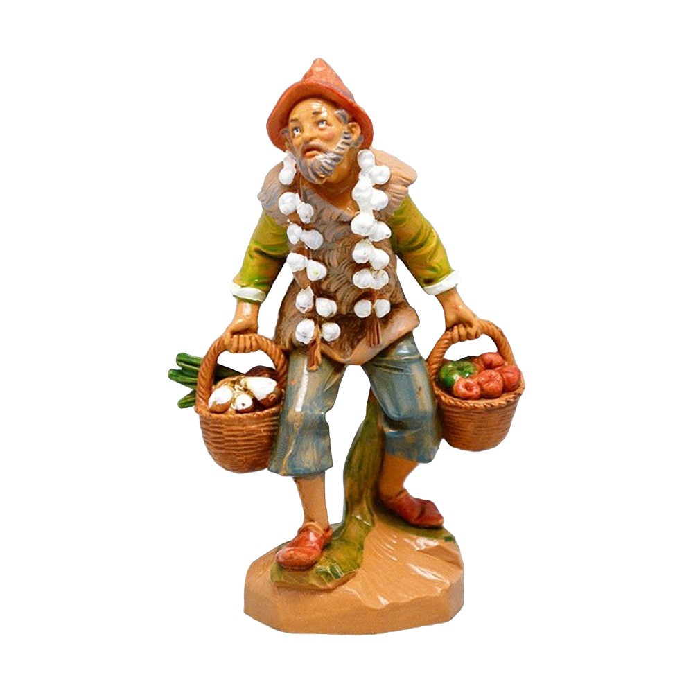 Personaggio Anziano Pastore con Agli appesi al collo e Ortaggi nel Cesto per il Presepe Fontanini da 12 cm.