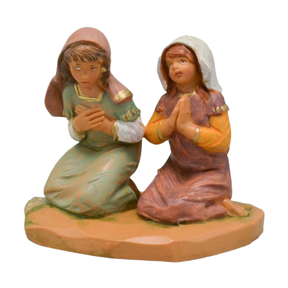 Bambine in ginocchio che pregano per presepe Fontanini cm 12:La statuina è alta 12 cm, realizzata in PVC. Colorazione: Tipo legno. Prodotto italiano.