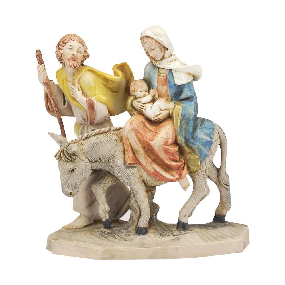 Scena Fuga in Egitto realizzata dalla ditta Fontanini. Questa graziosa statua è di tipo porcellana. Le proporzioni di questi personaggi sono adatte per presepe da 12 cm.
