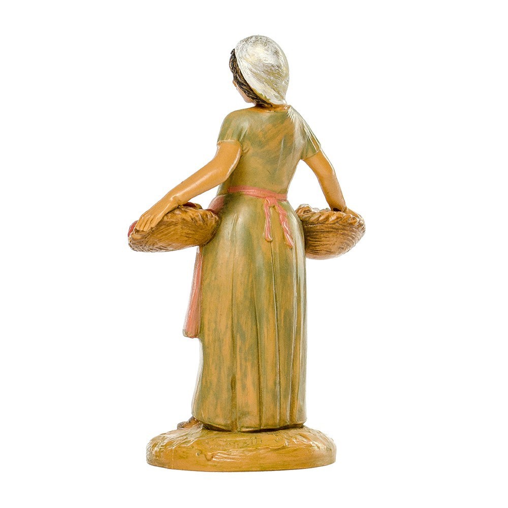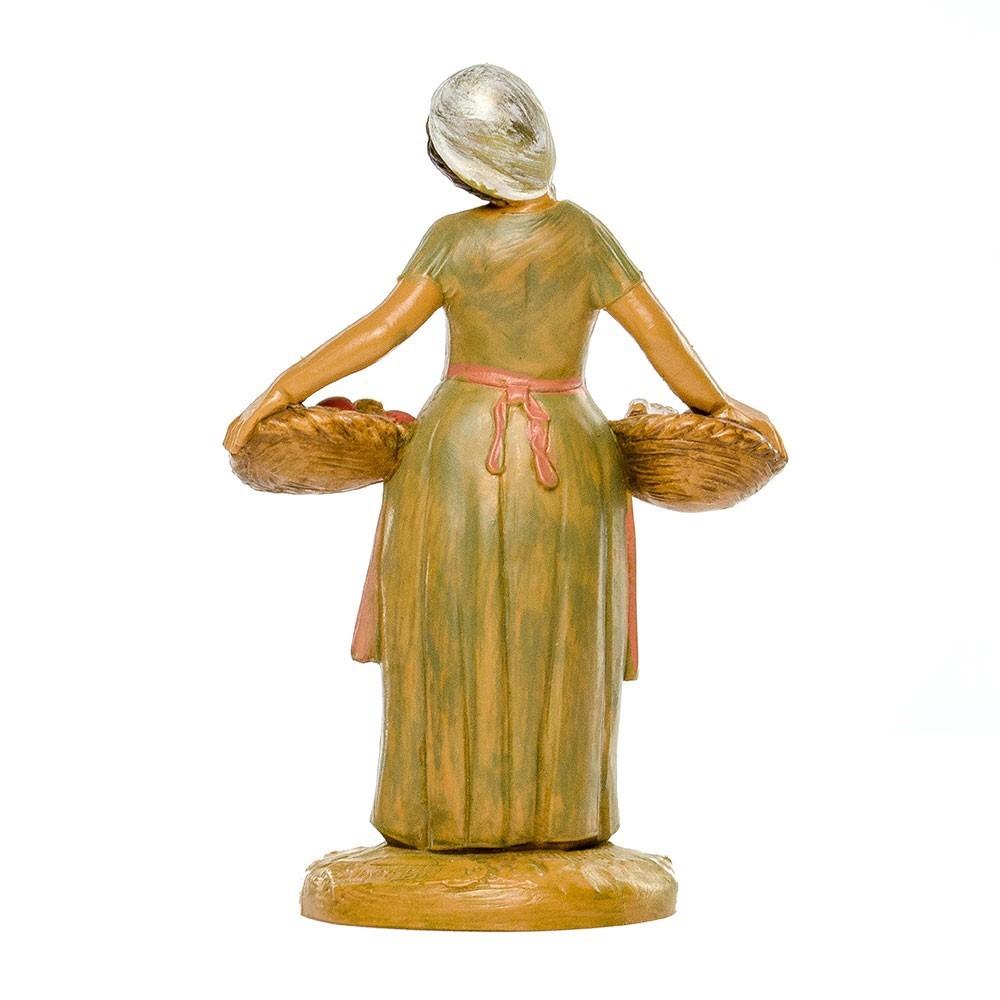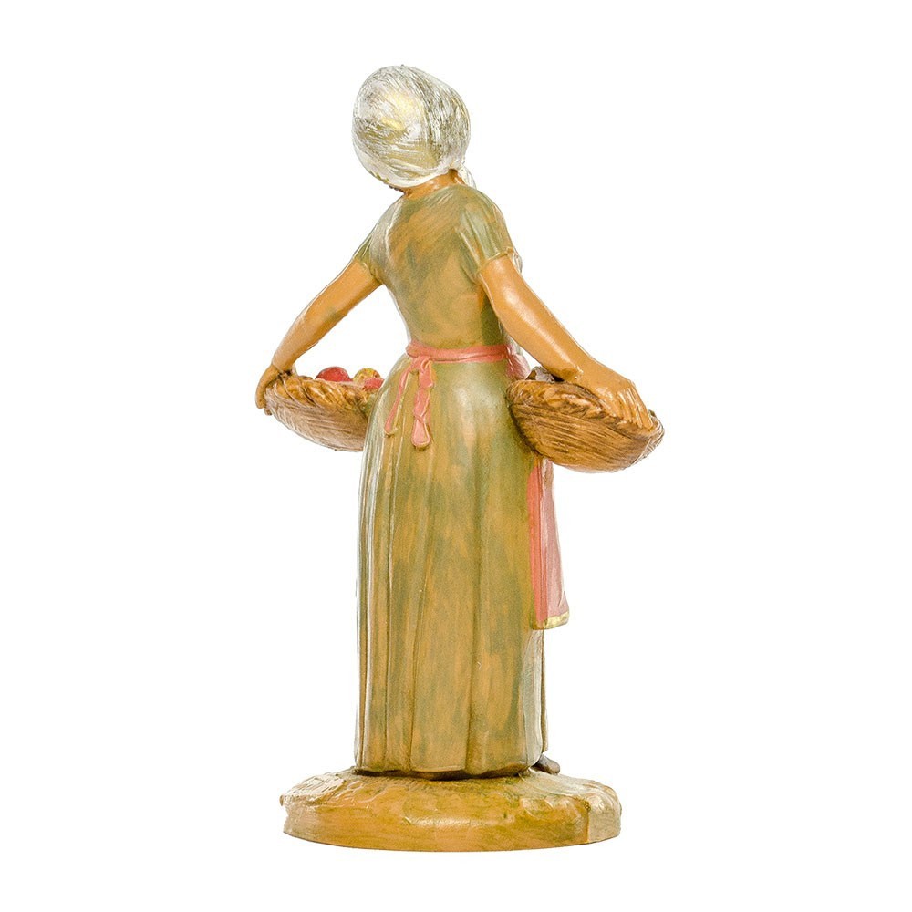 Pastorella con Cesti di Frutta. La statua raffigura una giovane donna con in mano due cestini di frutta. Realizzata in PVC, dipinta a mano con colorazione Tipo Legno.