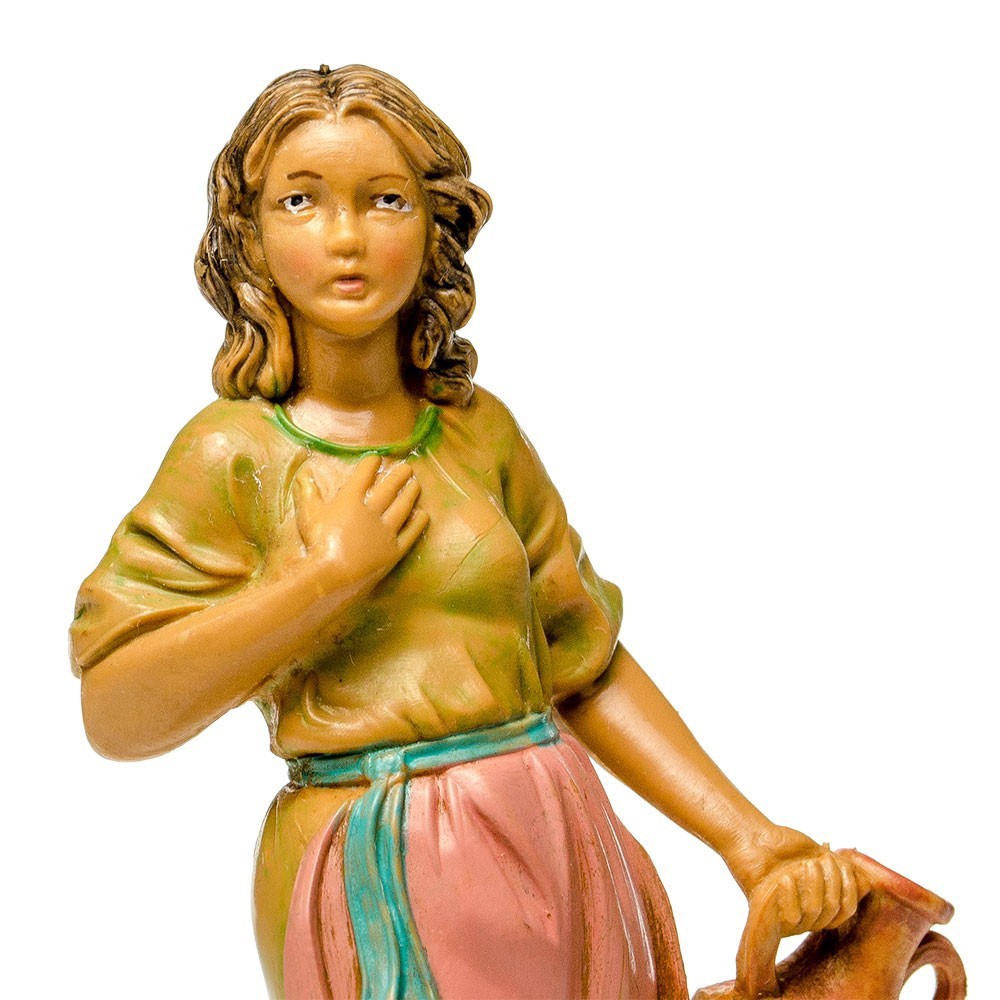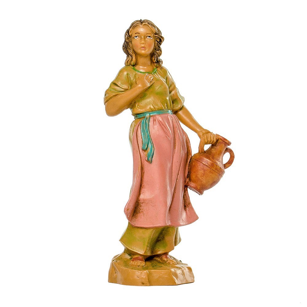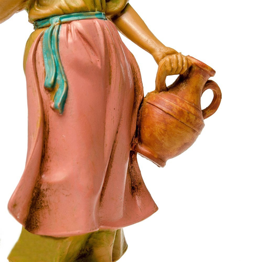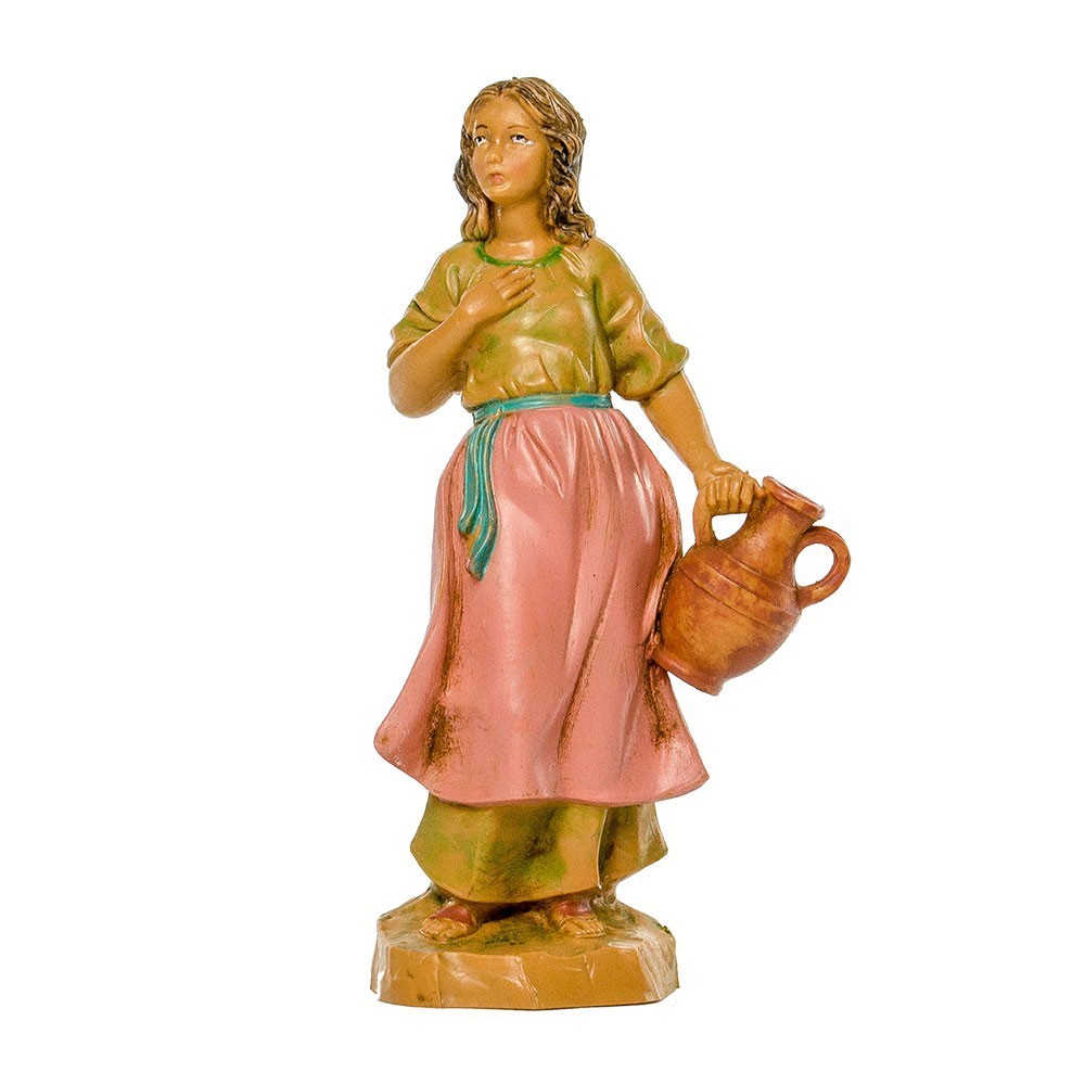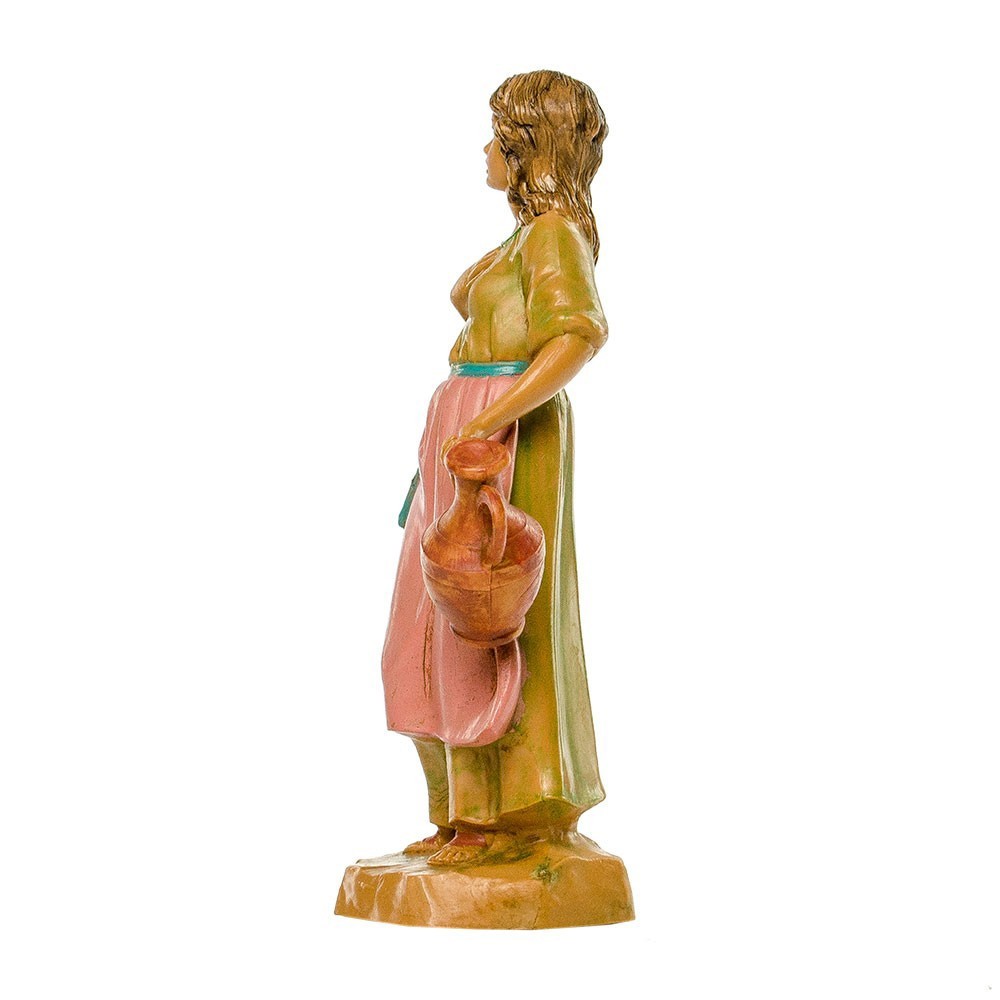 Pastorella con anfora 12 cm. La statua è adatta per il presepe fontanini 12 cm, raffigura una donna con anfora in mano. La statua è realizzata con colorazione tipo legno, in PVC, materiale leggero e infrangibile. Prodotto dalla ditta Fontanini.
