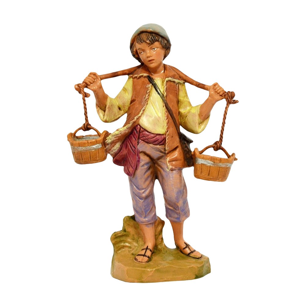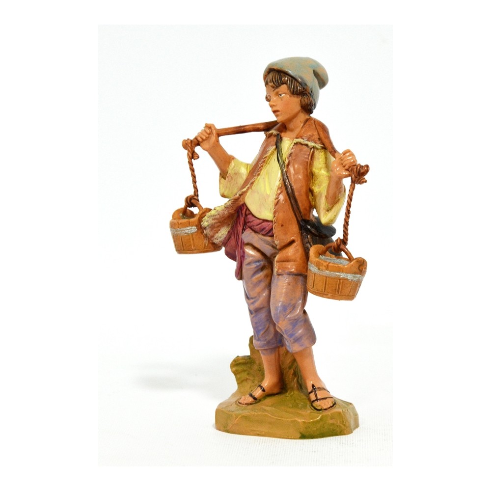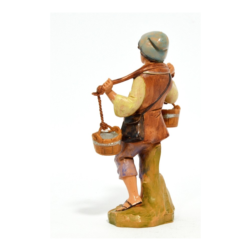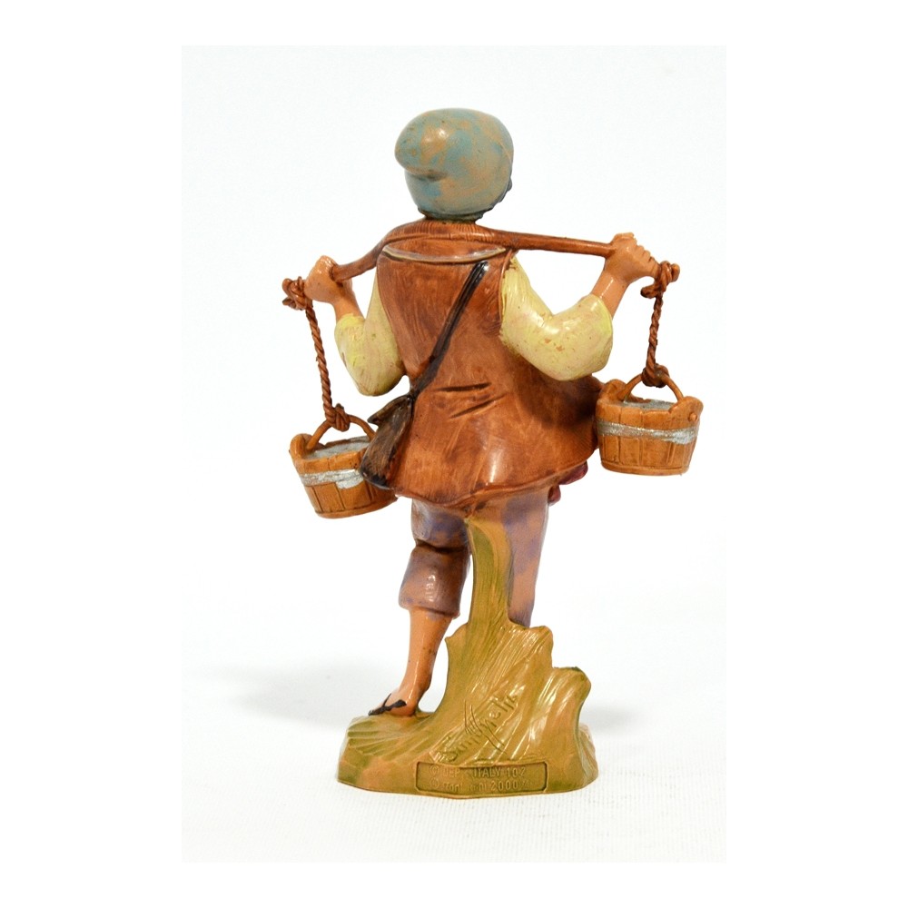 Statua del personaggio Pastore con secchi d'acqua per il Presepe Fontanini da 12 cm.